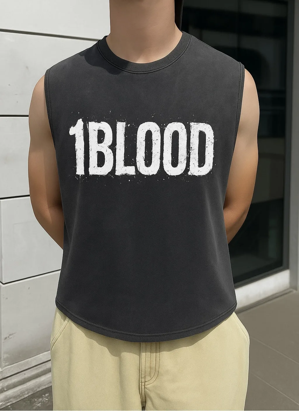 1Blood Atlet Bisiklet Yaka Yıkamalı Vintage Unisex Oversize T-Shirt
