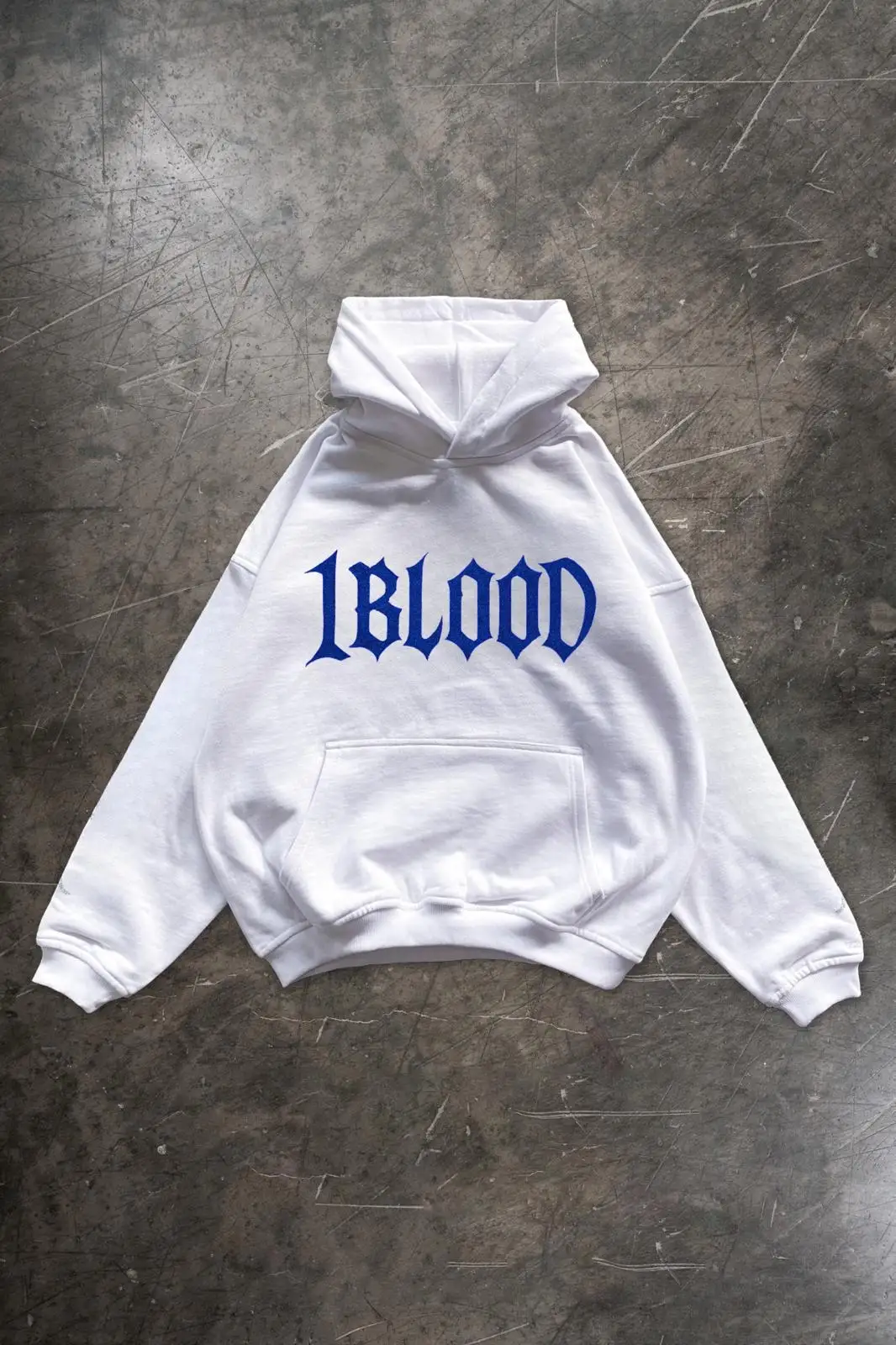 1Blood Mavi Taş Baskılı Oversize Unisex Kapüşonlu Sweatshirt