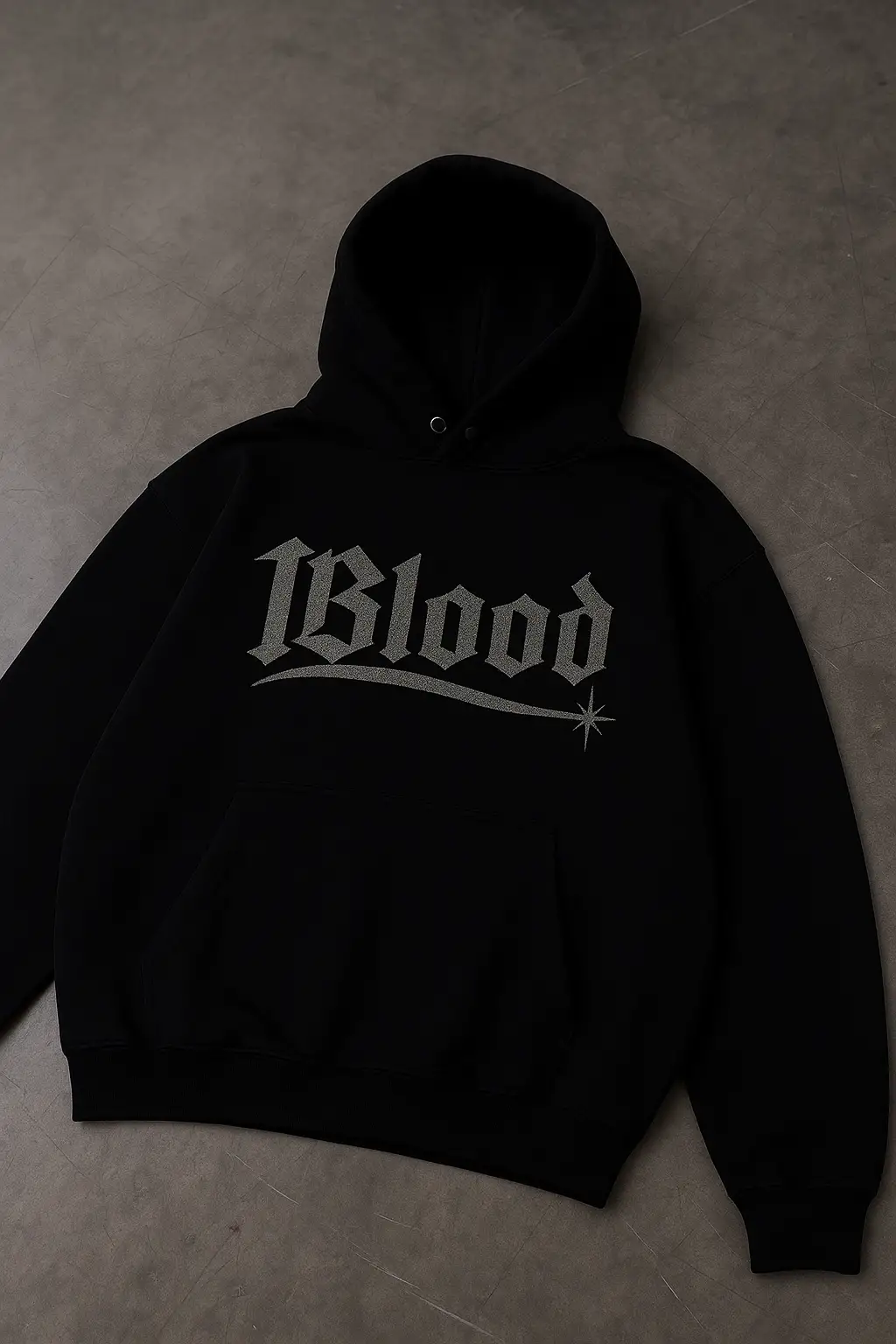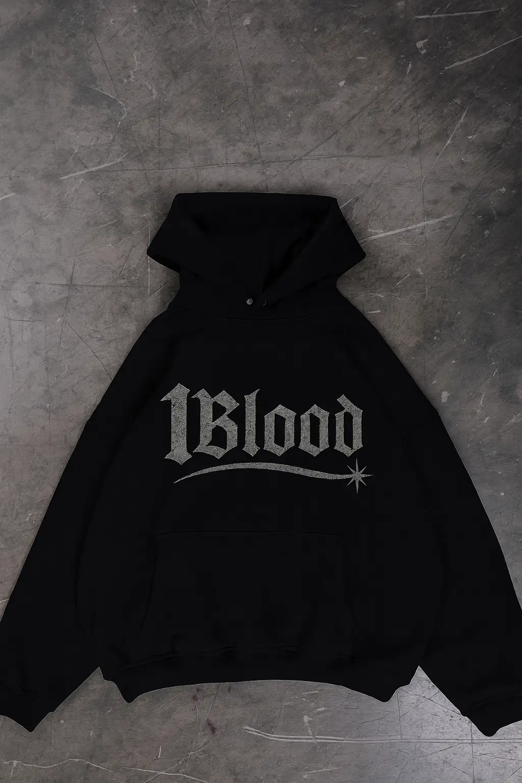 1Blood Siyah Taş Baskılı Oversize Unisex Kapüşonlu Sweatshirt