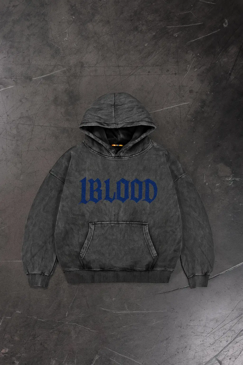 1Blood Yıkamalı Taş Baskılı Oversize Unisex Kapüşonlu Sweatshirt
