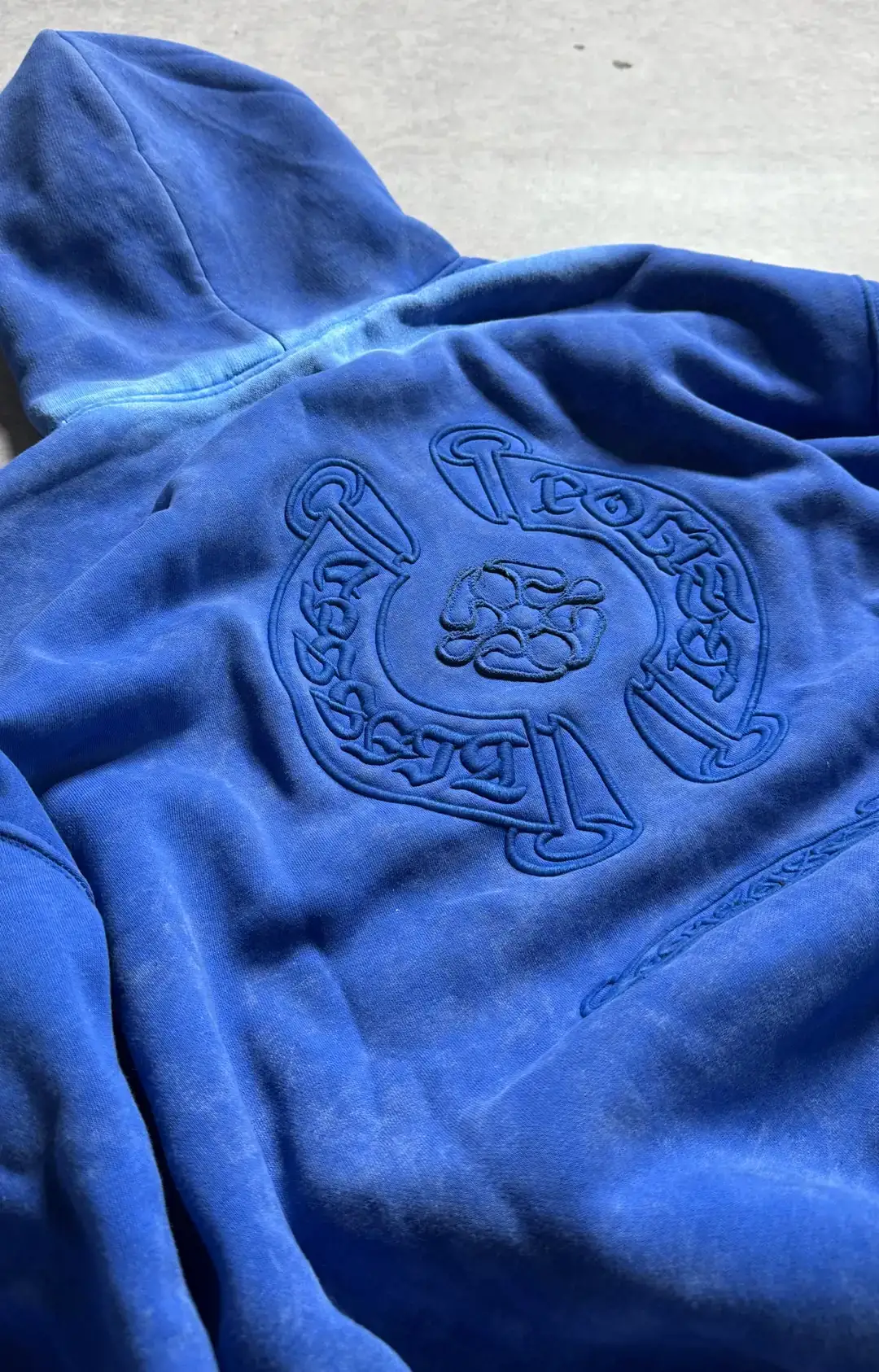 Mavi Acid Wash Aplike Nakışlı Oversize Premium Sweatshirt