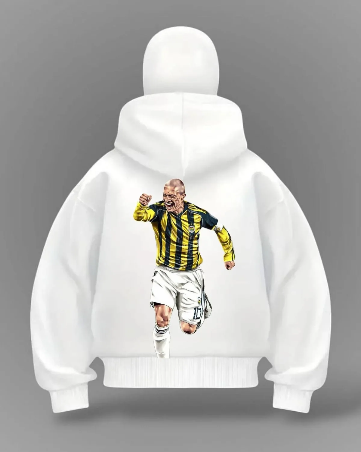 Beyaz Swd Kurdele Baskılı Oversize Kapüşonlu Sweat