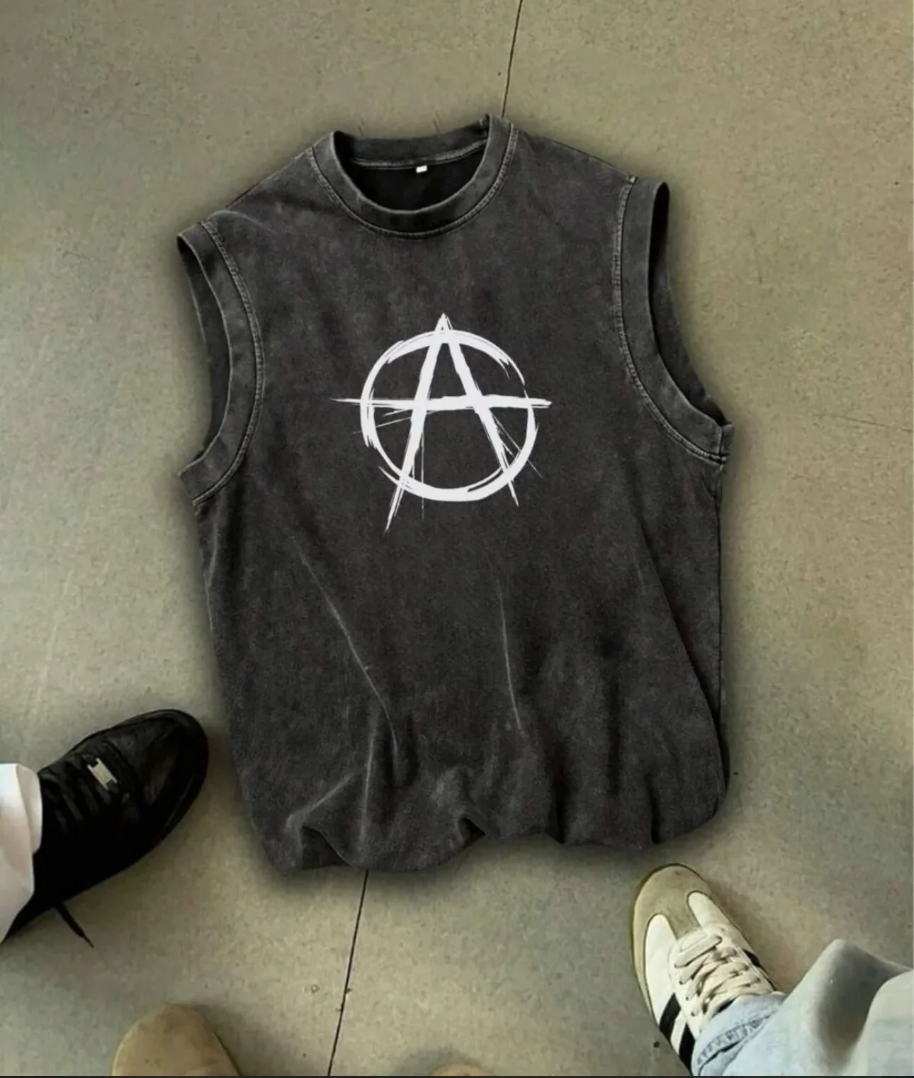 Anarchy Atlet Bisiklet Yaka Yıkamalı Vintage Unisex Oversize T-Shirt