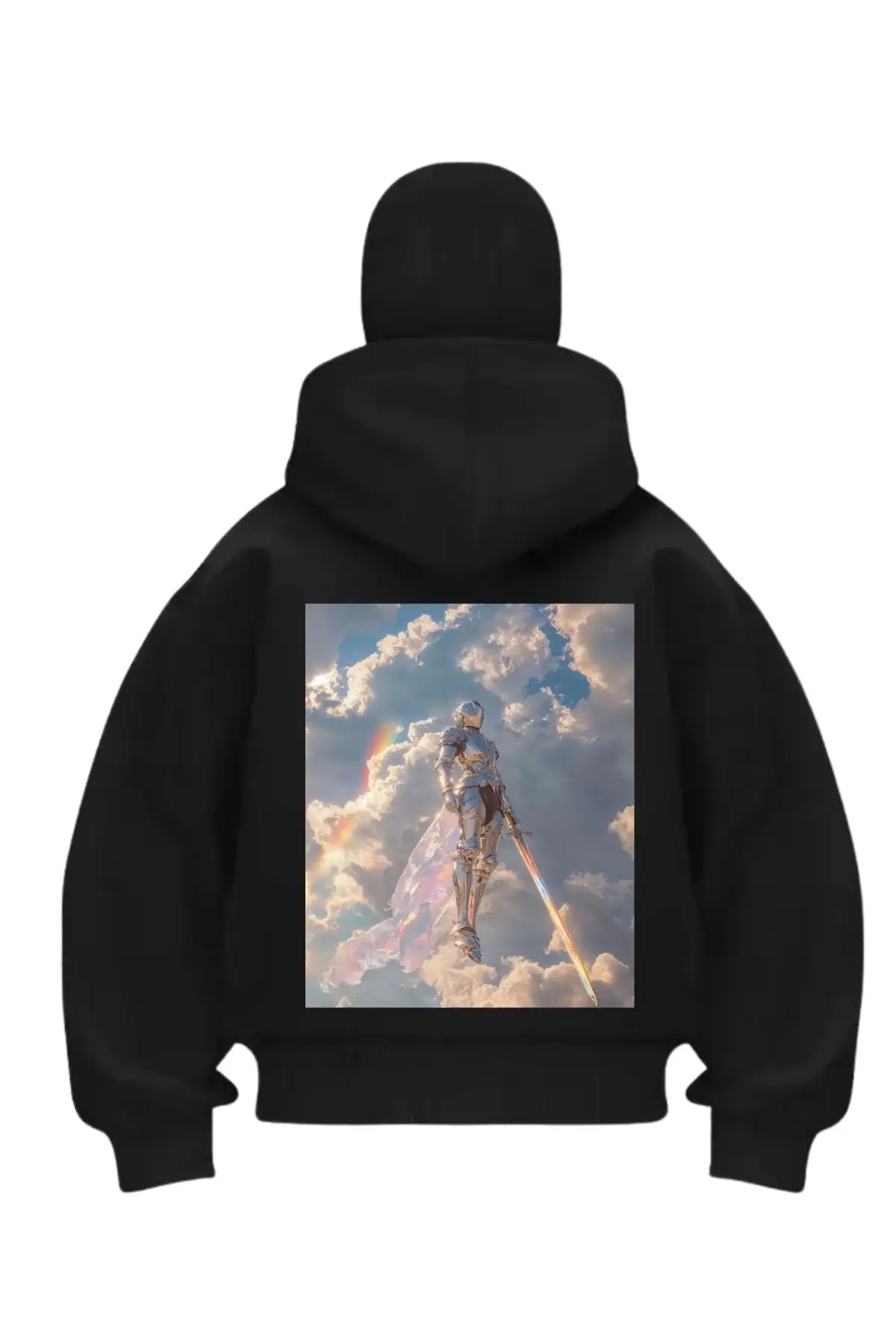 Angels Warrior Baskılı Siyah Samuray Kar Maske Sweatshirt Hırka