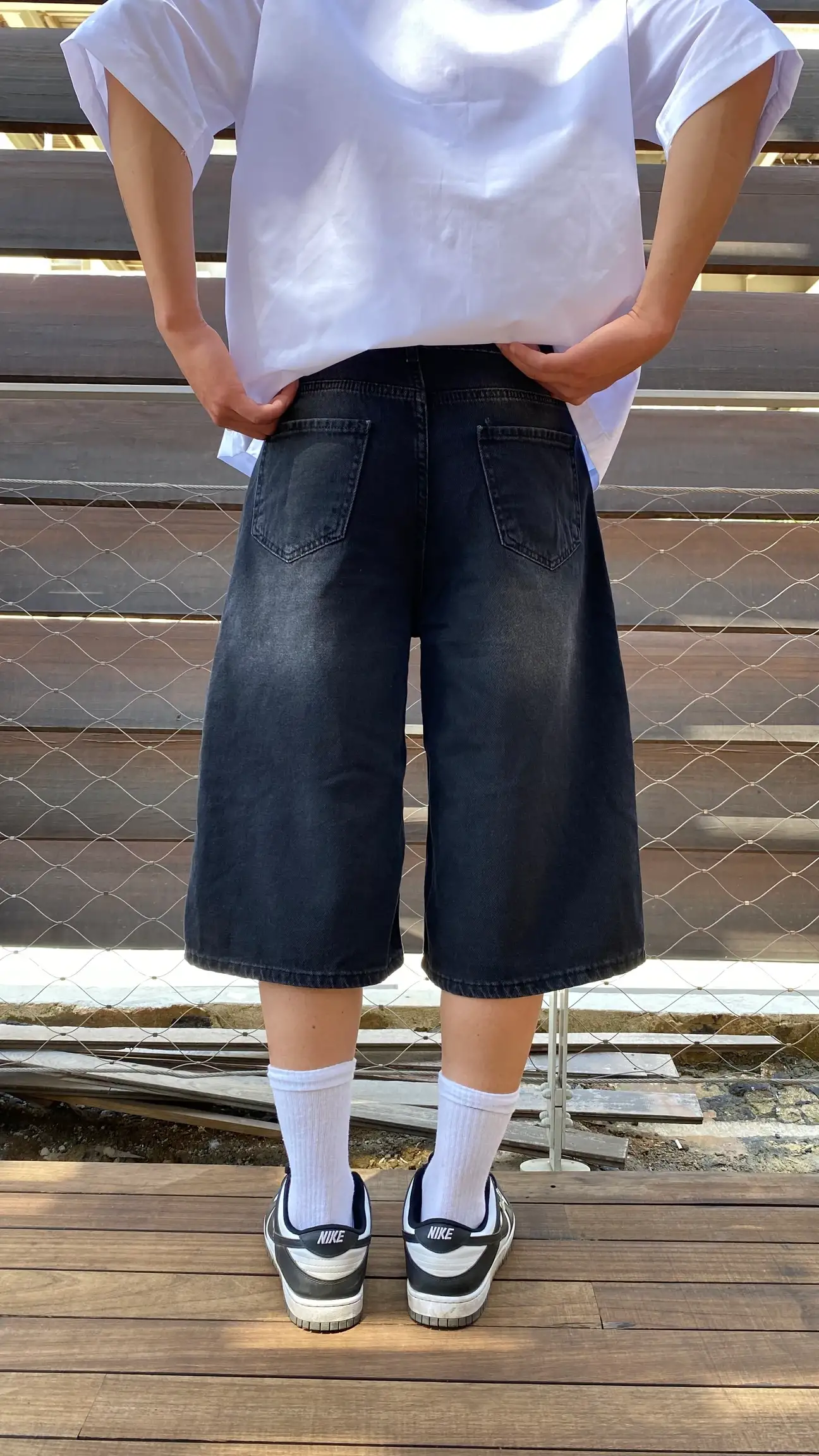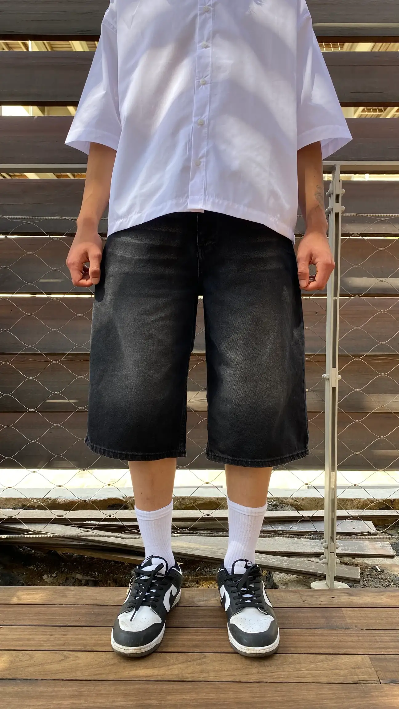 Antrasit Yıkamalı Baggy Jean Şort