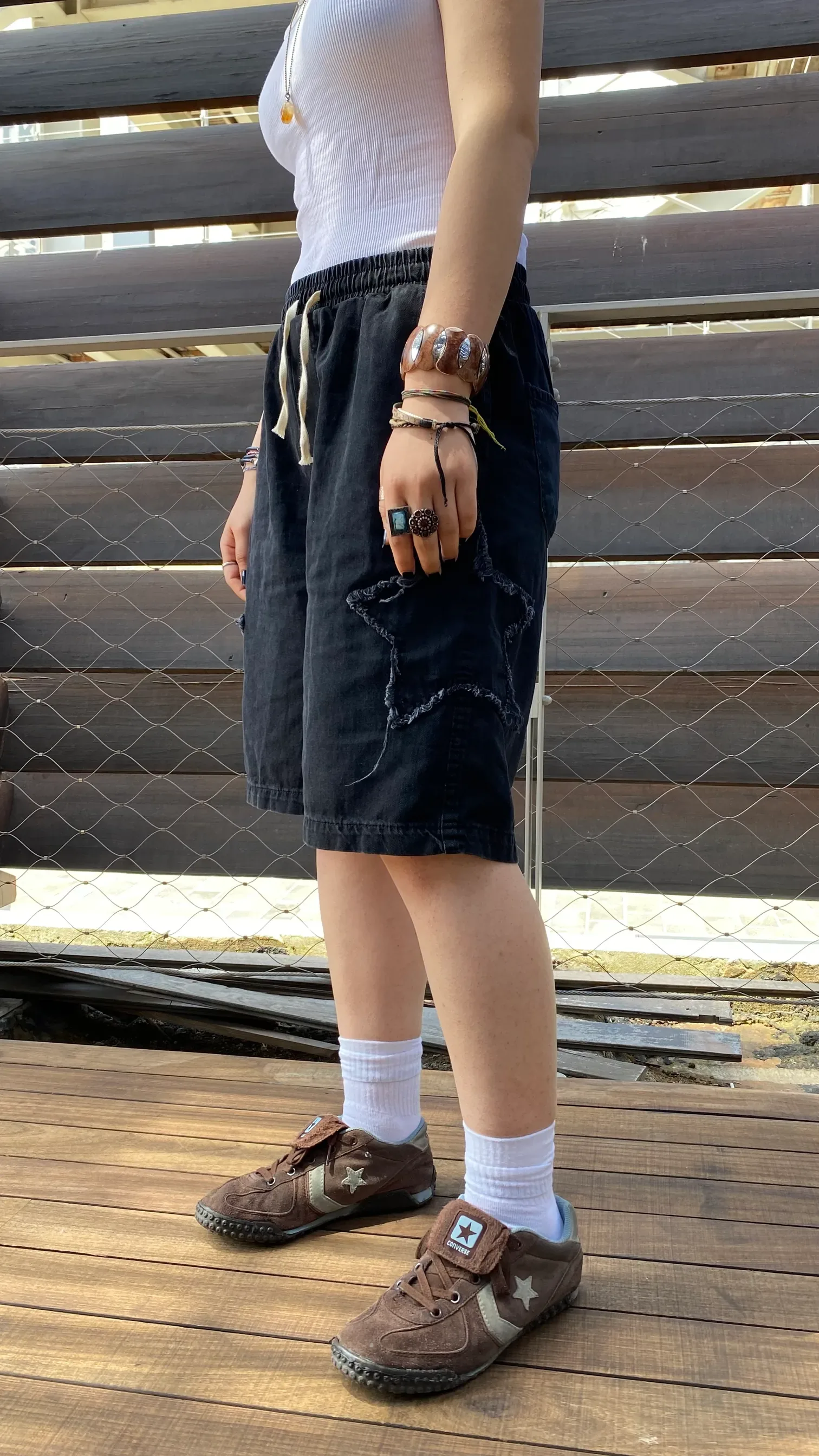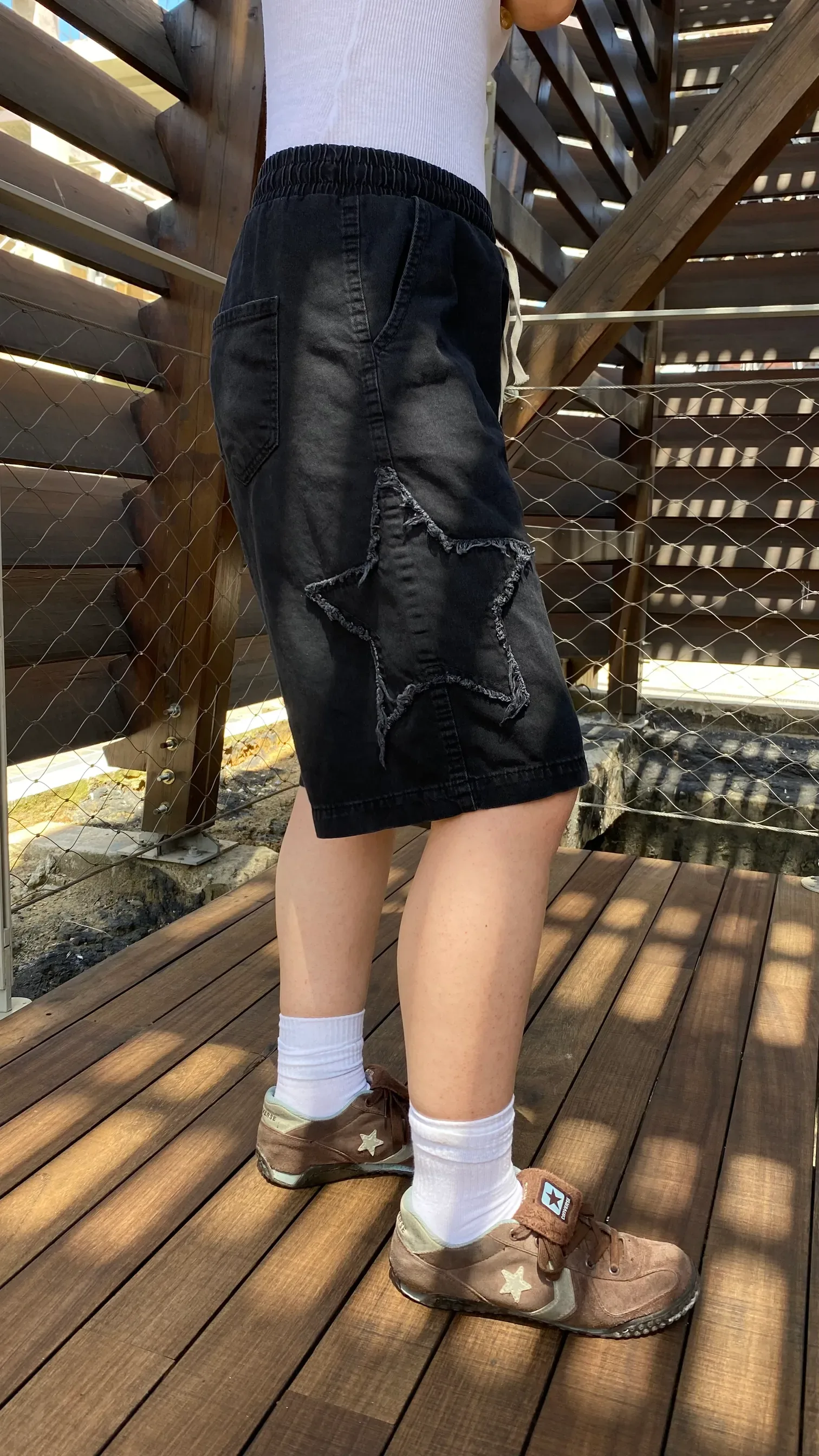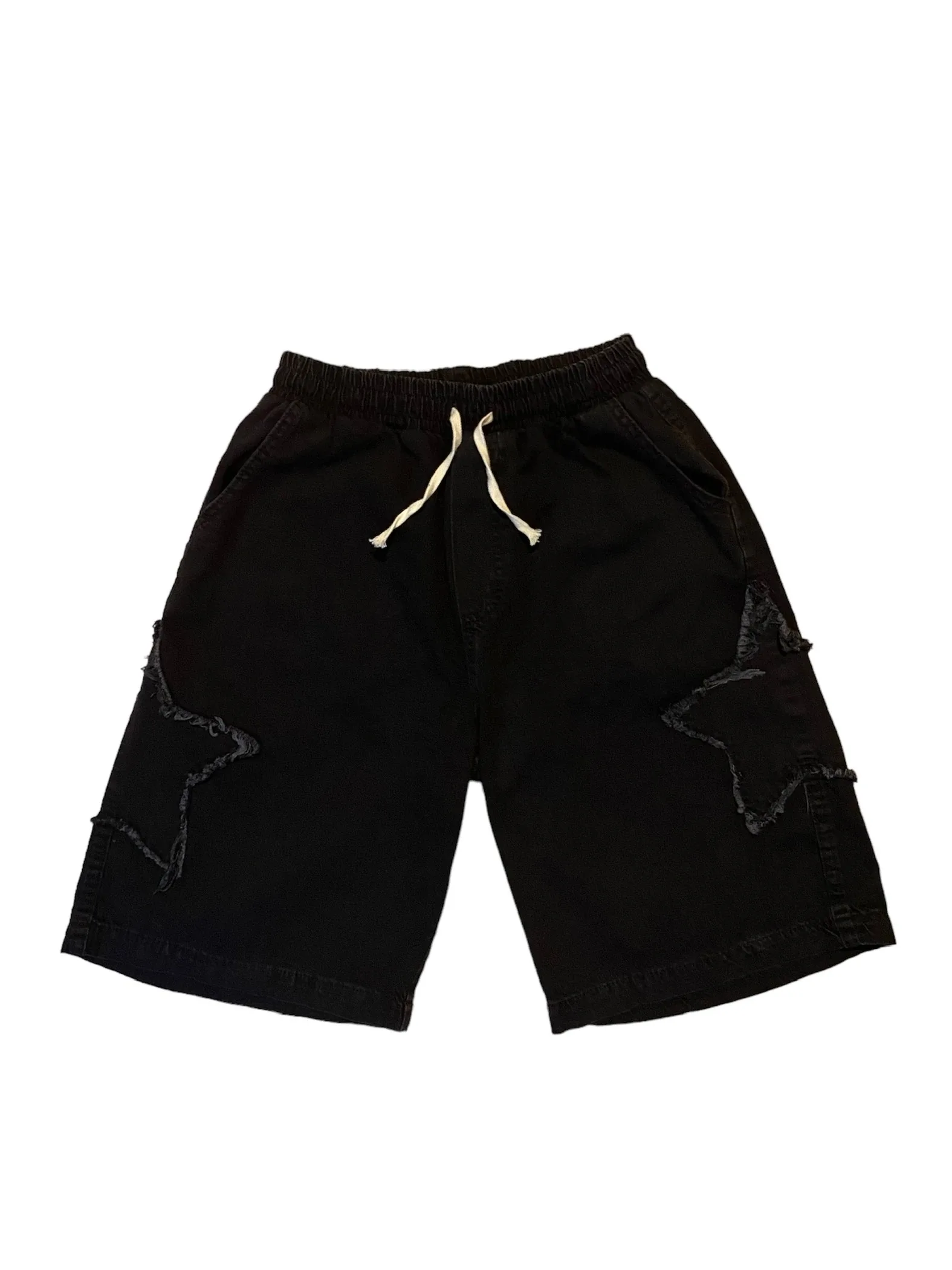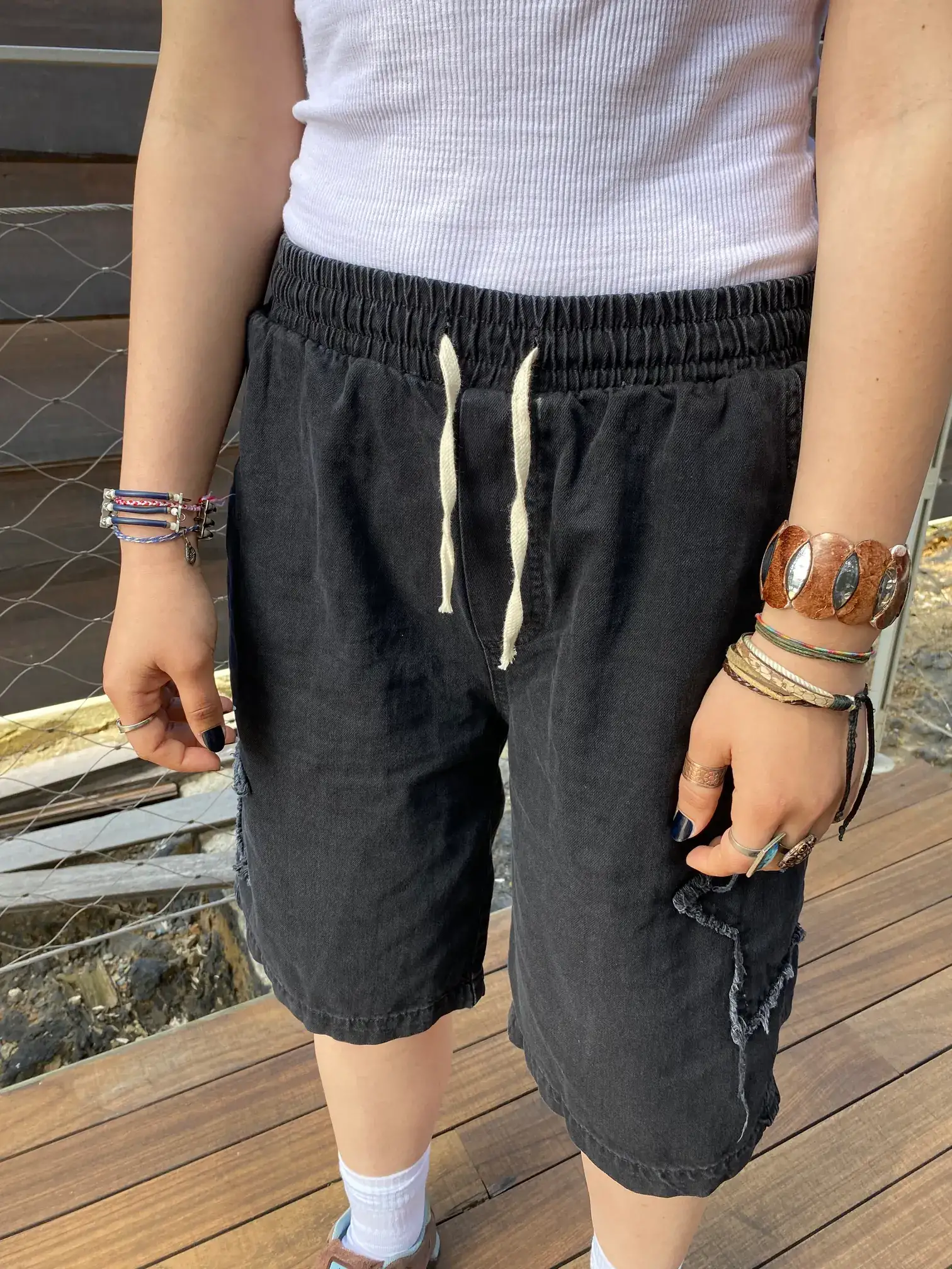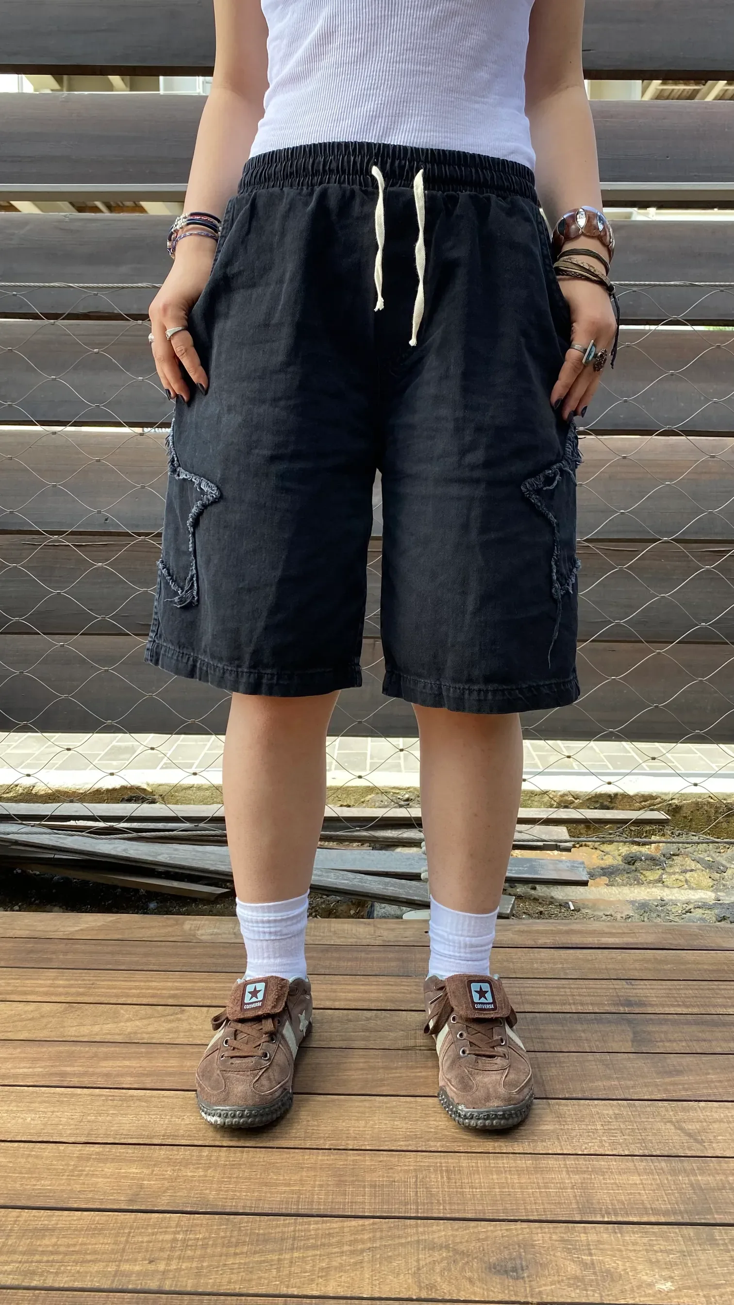 Antrasit Yıldız Detay Lazer Kesim Baggy Şort