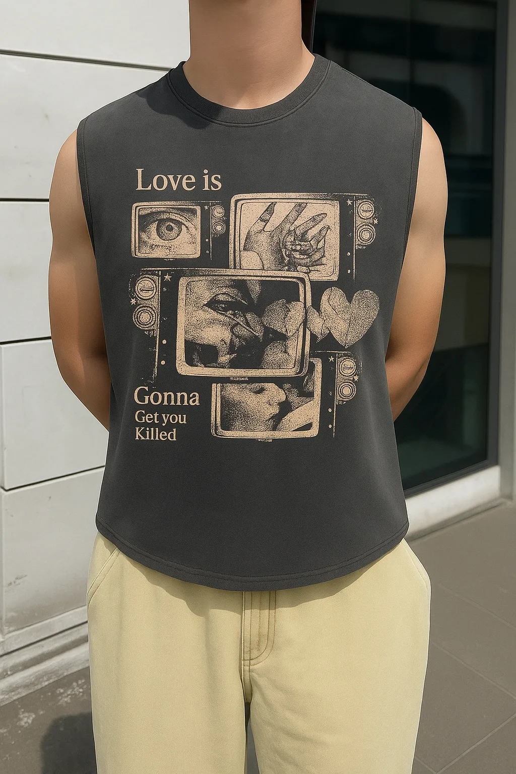 Aşk seni öldürecek Atlet Bisiklet Yaka Yıkamalı Vintage Unisex Oversize T-Shirt