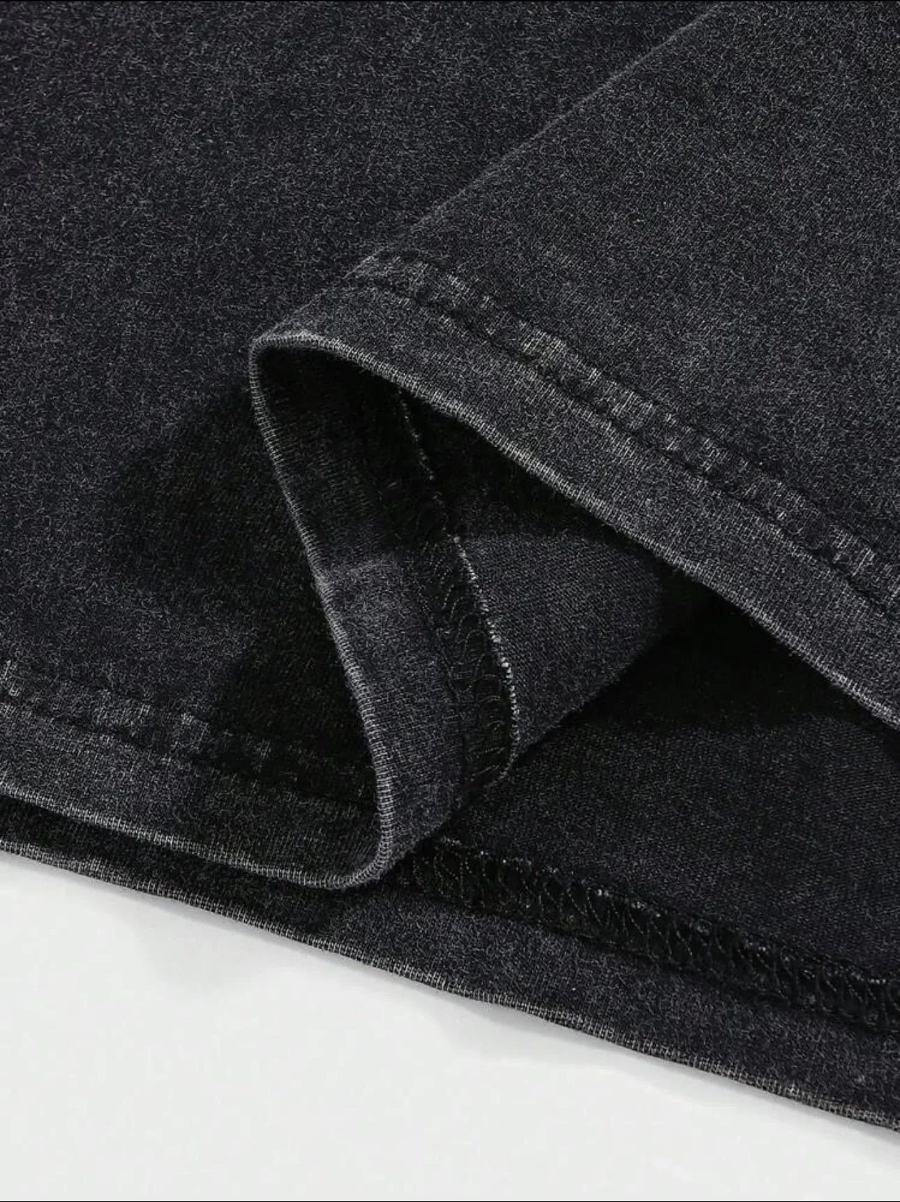 Siyah Acid Wash Aplike Nakışlı Oversize Premium Sweatshirt