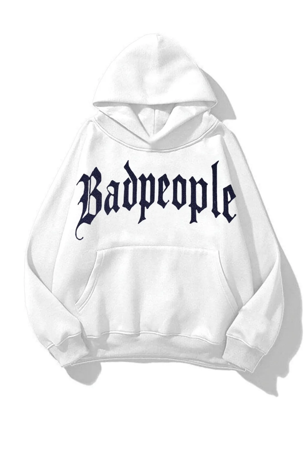 BadPeople Beyaz Taş Baskılı Oversize Unisex Kapüşonlu Sweat