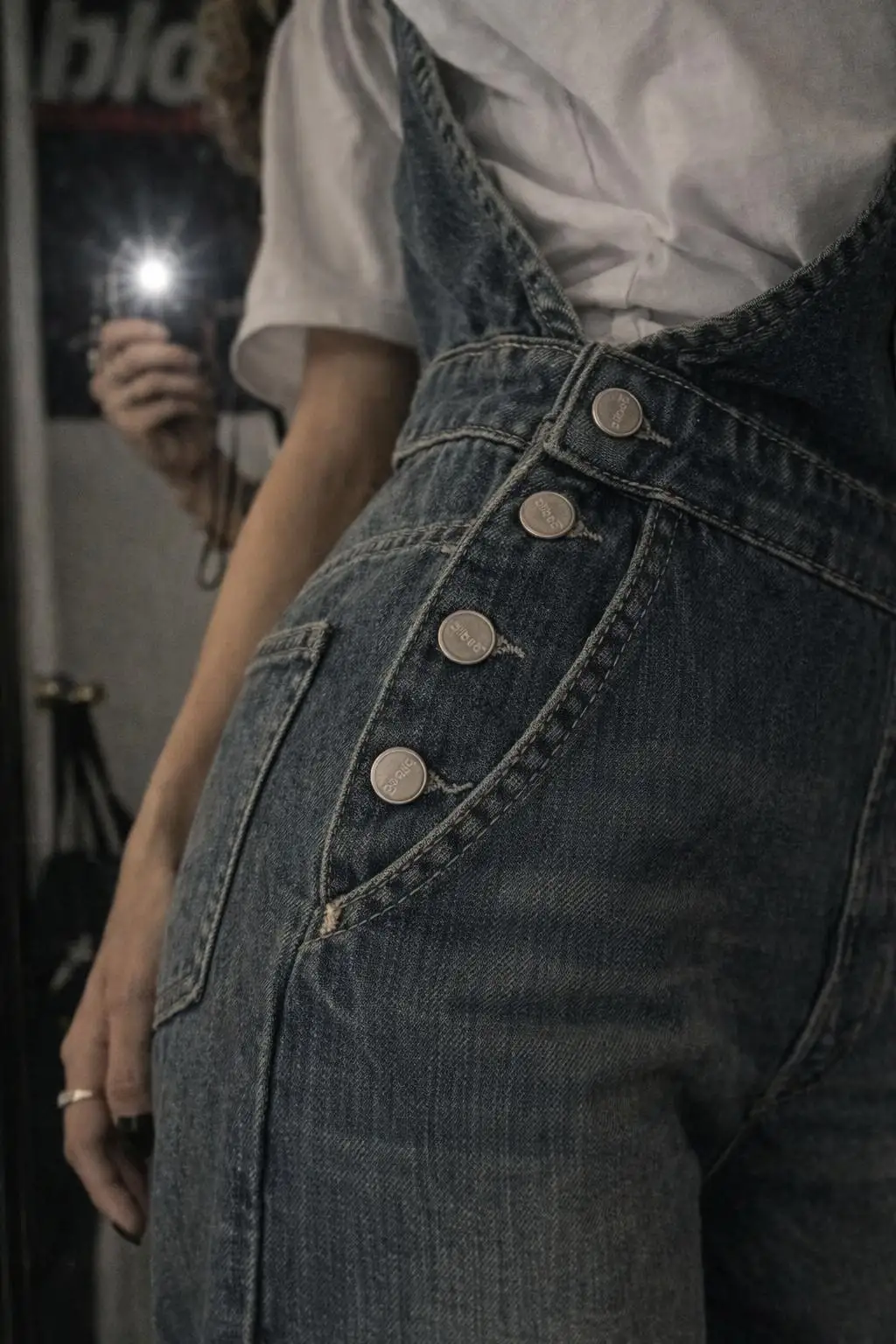 Ayarlanabilir askıları ve yan düğme detaylarıyla fonksiyonel bir kullanım sağlar.