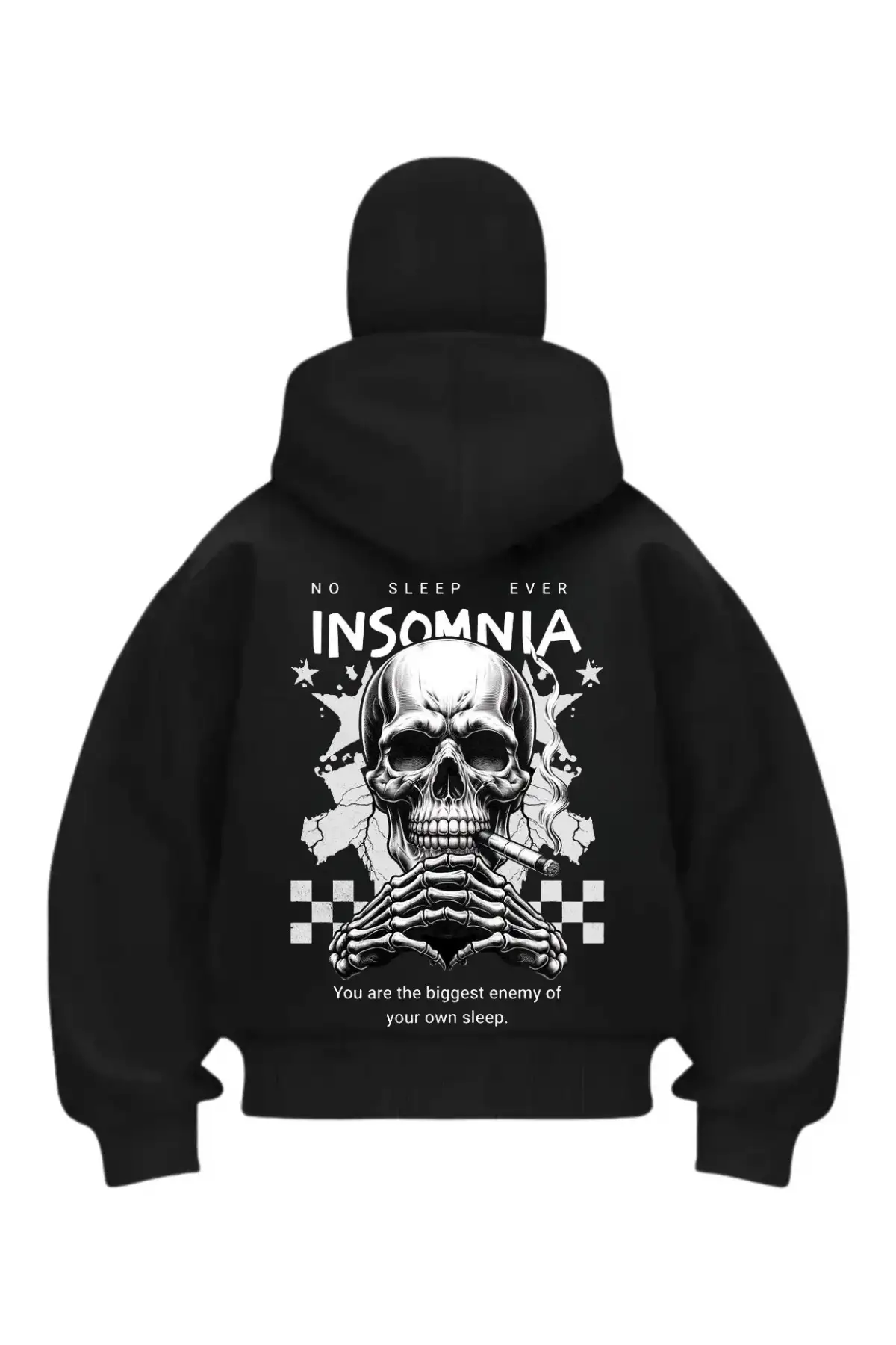 Story Never Baskılı Siyah Samuray Kar Maske Sweatshirt Hırka