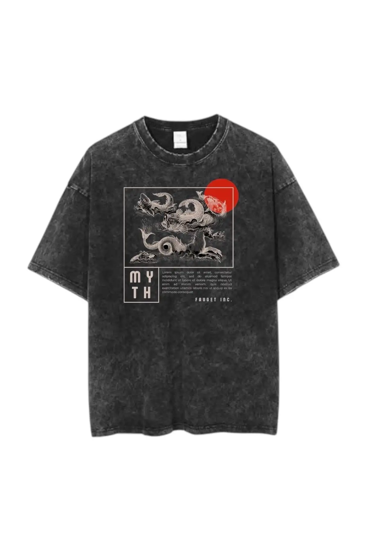 Baskılı Yıkamalı Eskitme Unisex Tişört