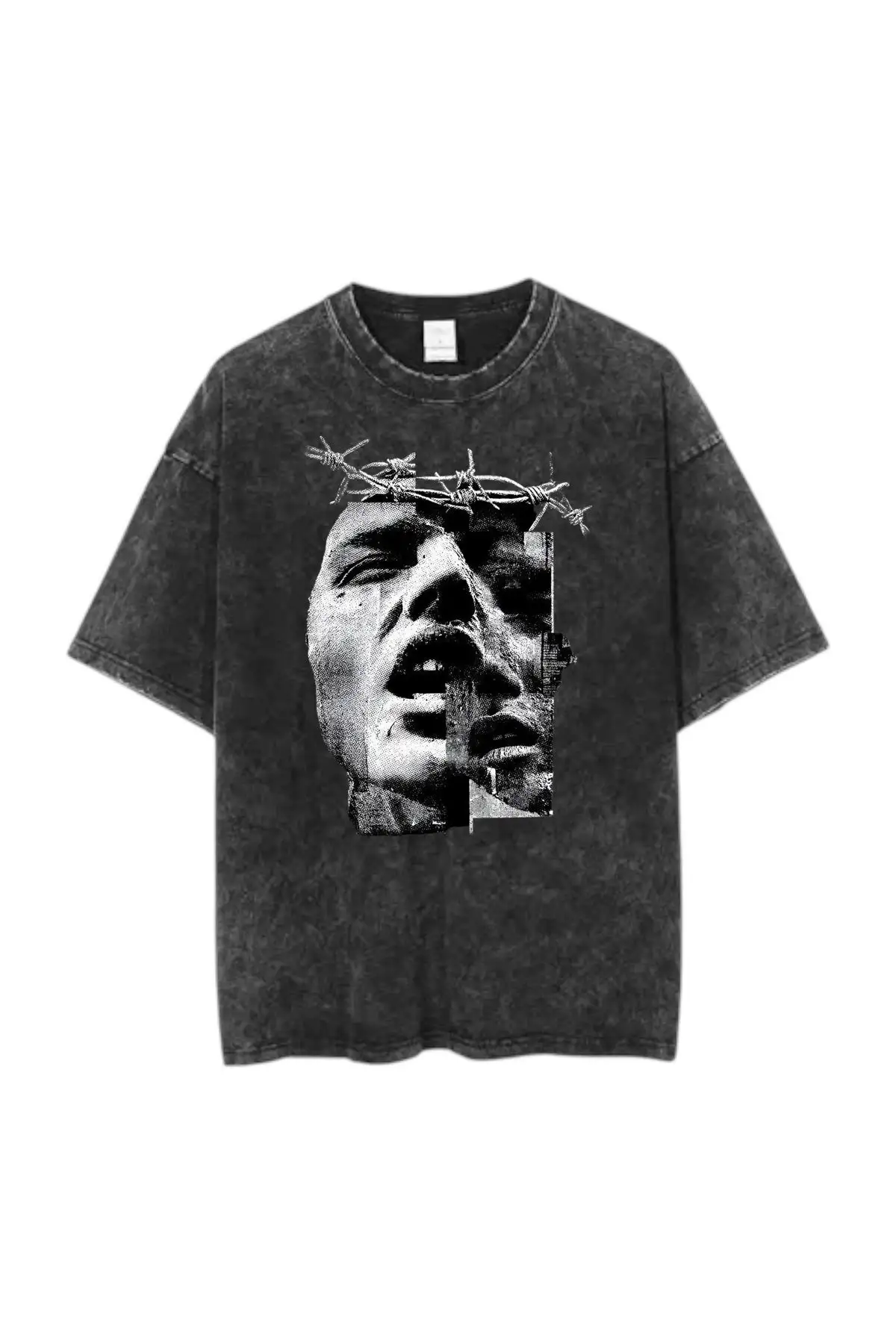 Baskılı Yıkamalı Eskitme Unisex Tişört