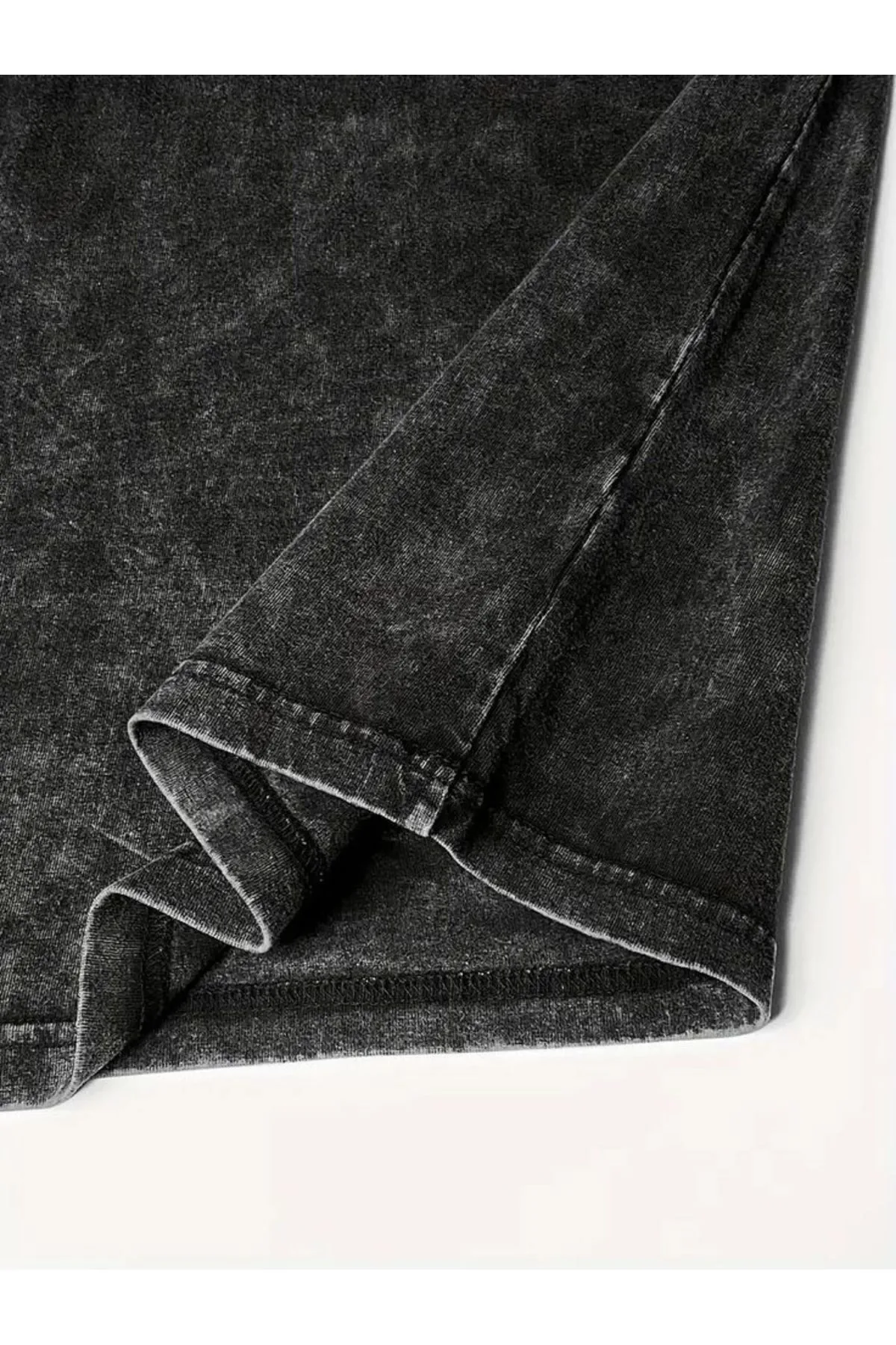 Baskılı Yıkamalı Eskitme Unisex T-shirt