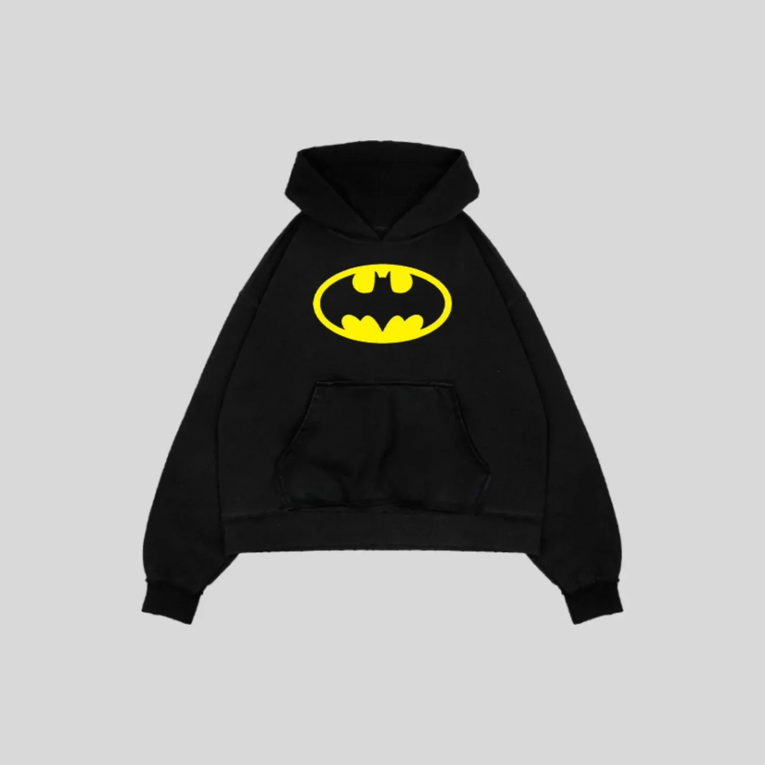 Siyah Baskılı Oversize Unisex Kapüşonlu Sweat