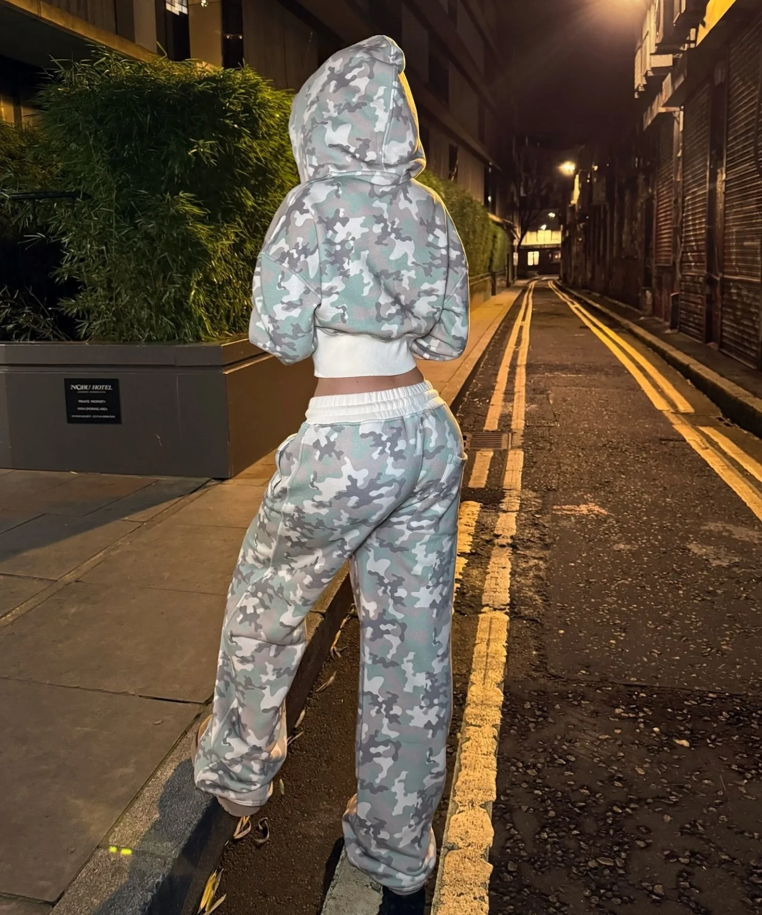 Yeşil Restock Kamuflaj Baggy Alt Üst Eşofman Takımı ( 3 İplik Şardonlu)