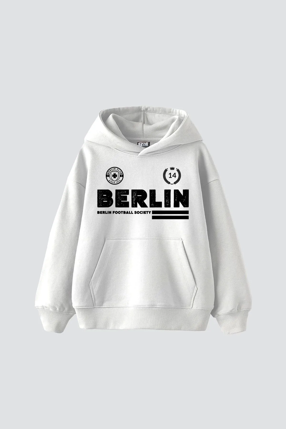 Berlin Baskılı Oversize Unisex Premium Beyaz Hoodie