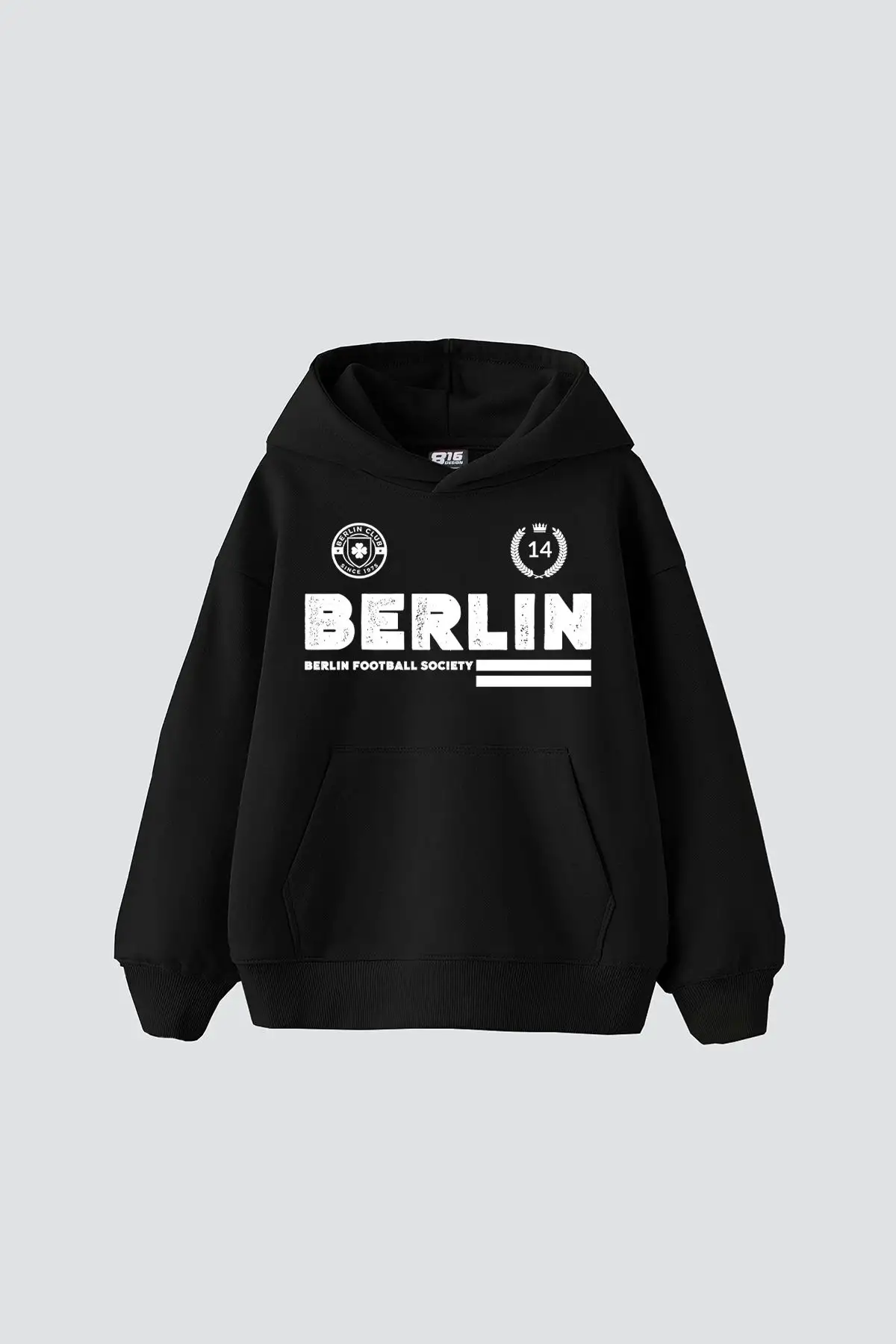 Berlin Baskılı Oversize Unisex Premium Siyah Hoodie