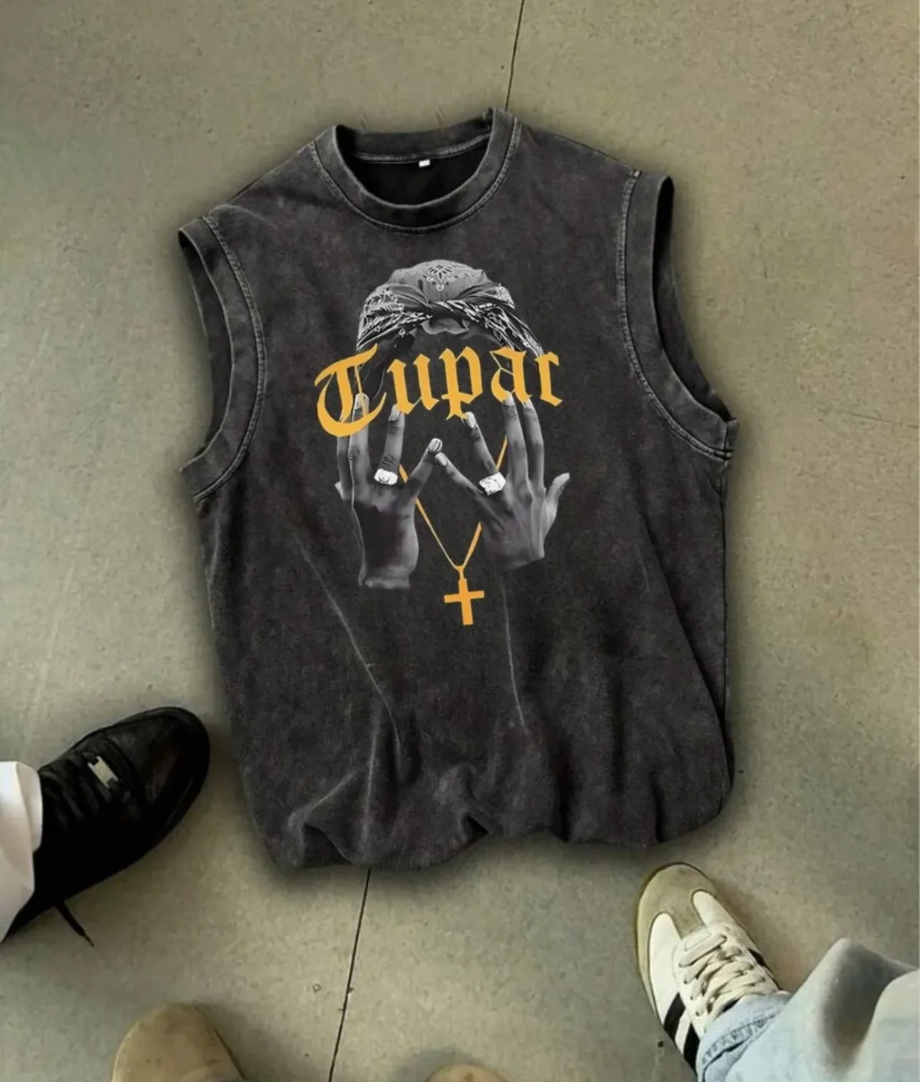 Tupac Atlet Bisiklet Yaka Yıkamalı Vintage Unisex Oversize T-Shirt