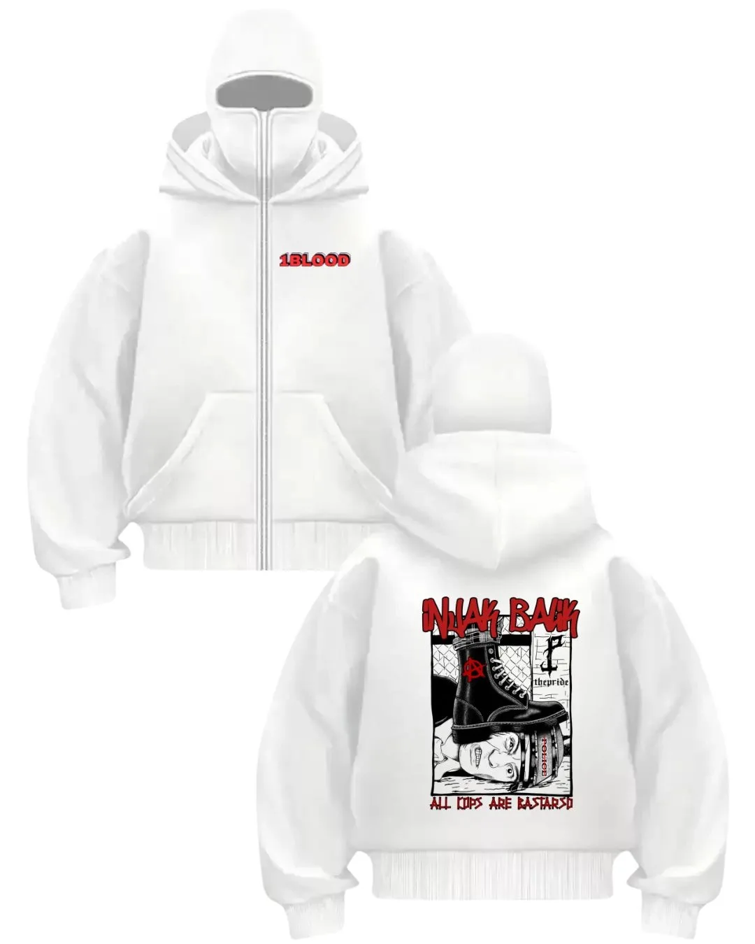 Beyaz 1BLOOD Grafik Desen Baskılı Kar Maskeli Unisex Sweatshirt Hırka