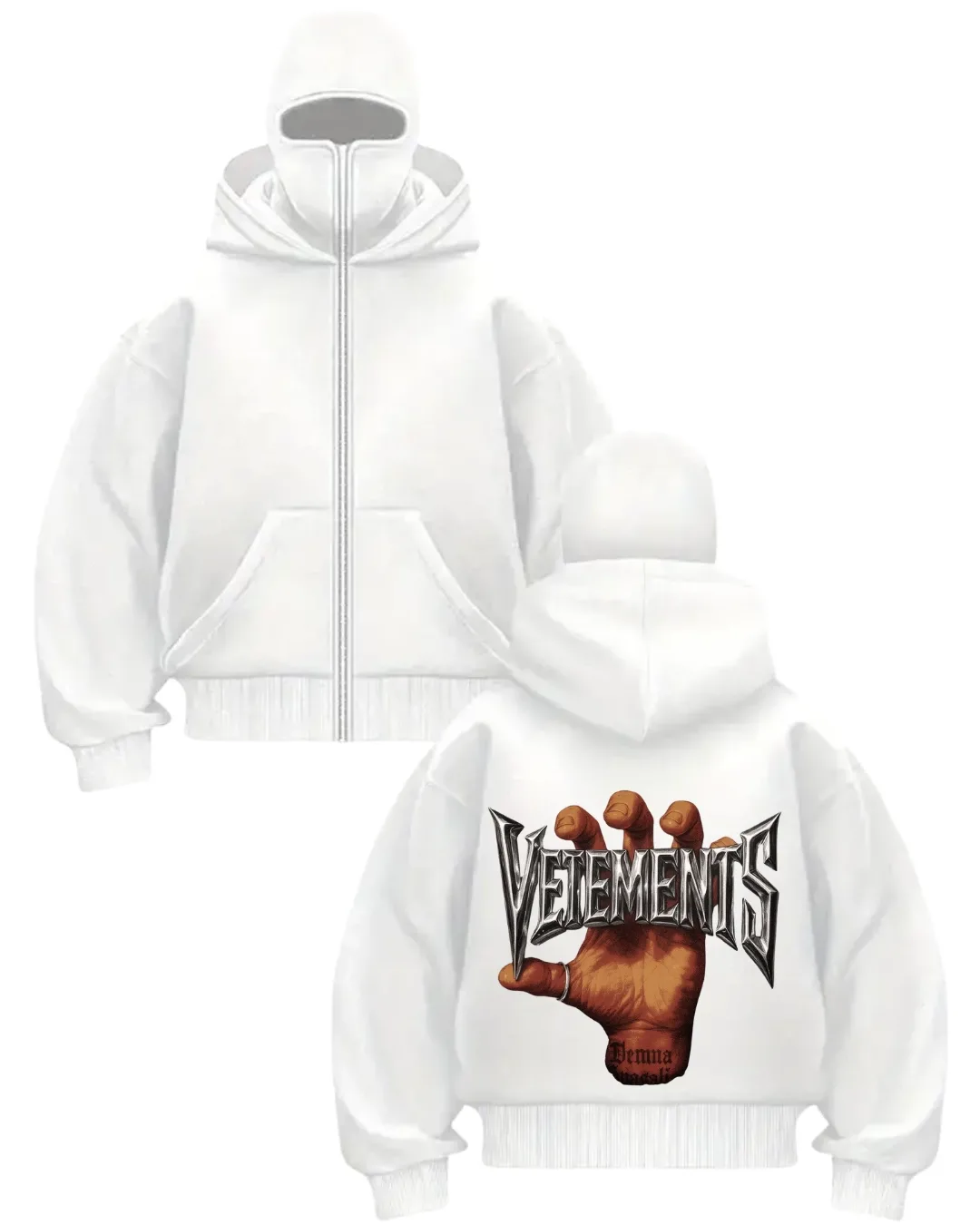 Beyaz Vetements Baskılı Kar Maskeli Unisex Sweatshirt Hırka
