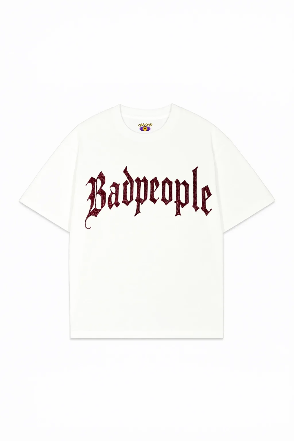 Beyaz BadPeople Kırmızı Taş Baskılı Oversize Unisex T-shirt