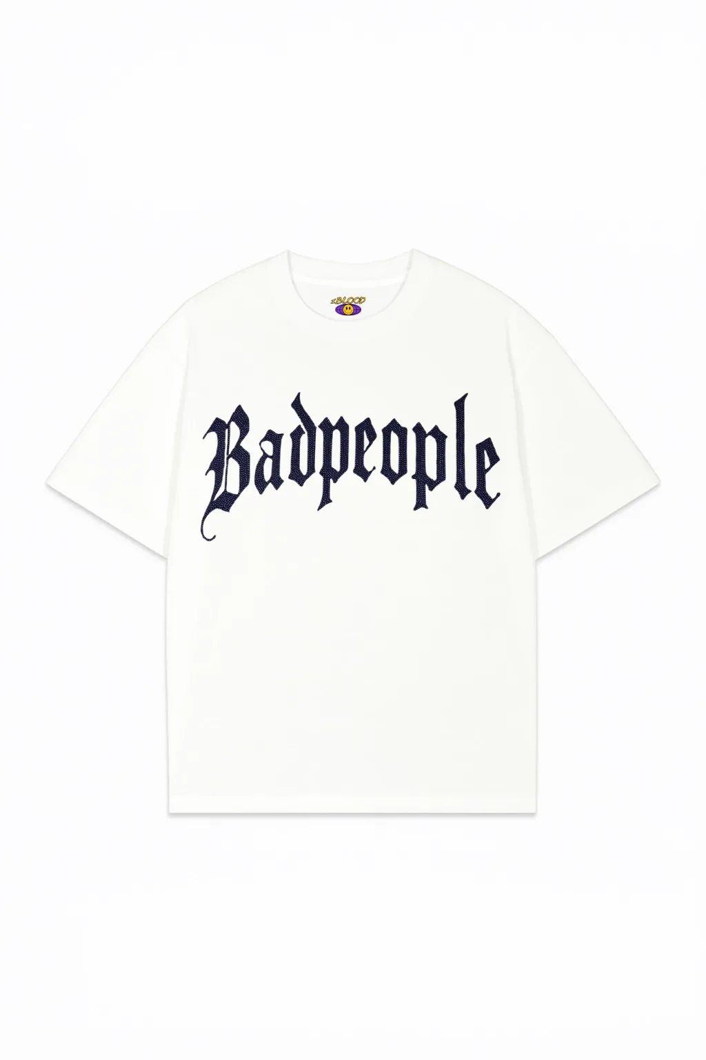 Beyaz BadPeople Mavi Taş Baskılı Oversize Unisex T-shirt