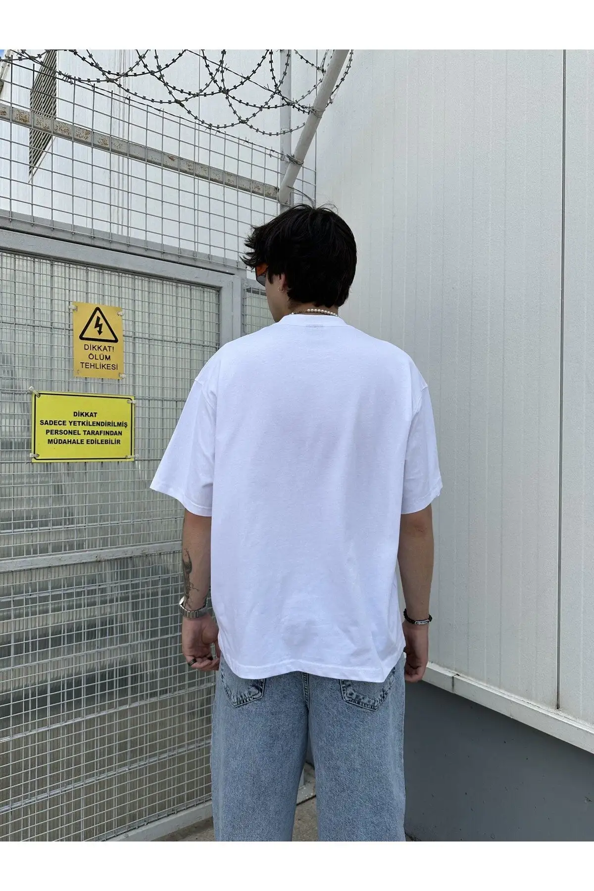 Beyaz ComeBack Beyaz Taş Baskılı Oversize Unisex T-shirt