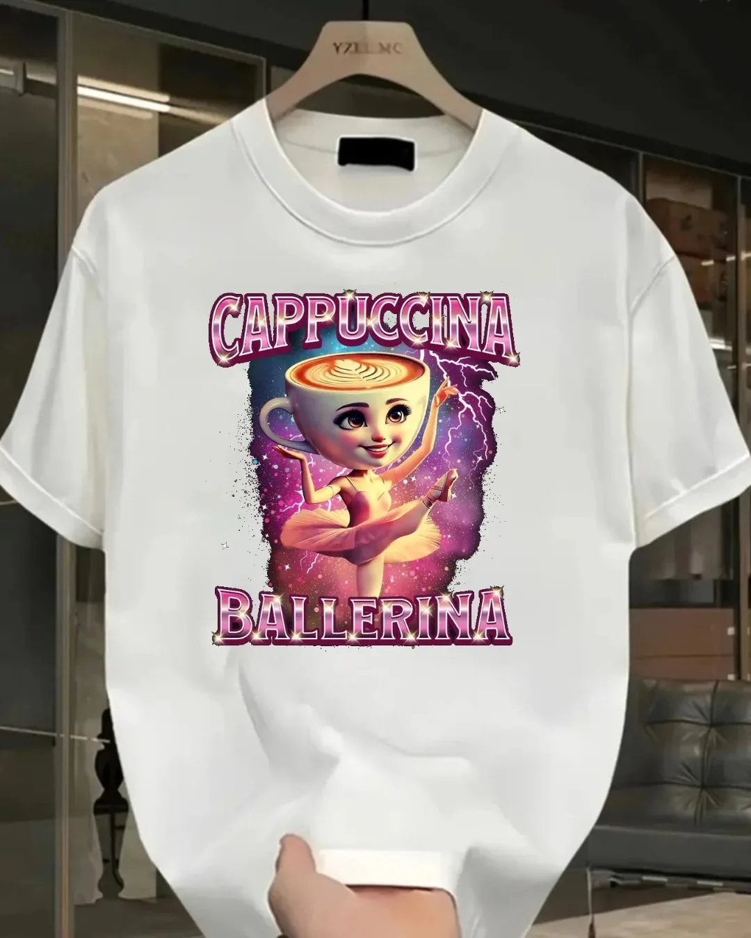 Beyaz Cappuccino Ballerina Baskılı Yıkamalı Vintage Unisex Oversize T-Shirt