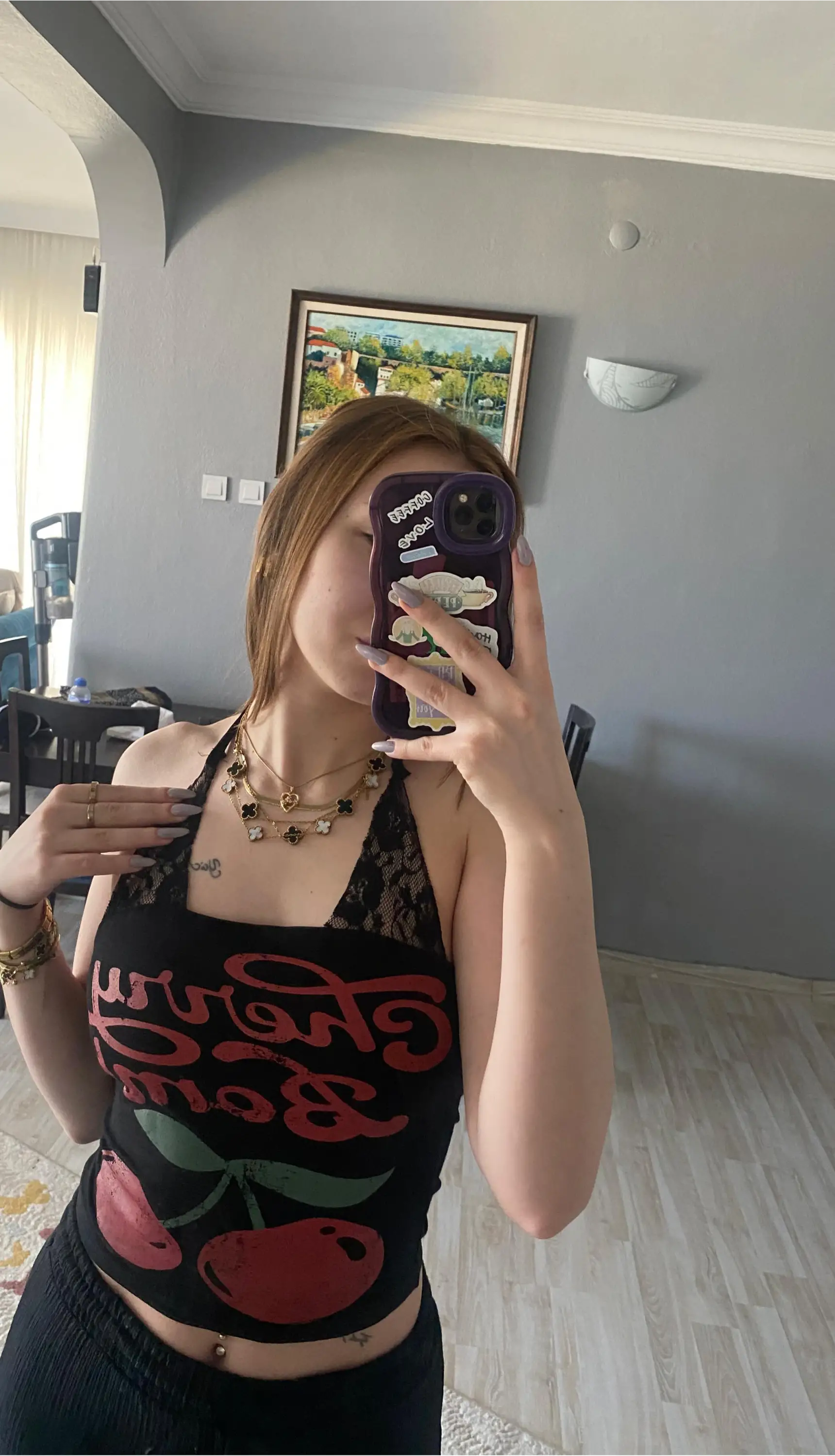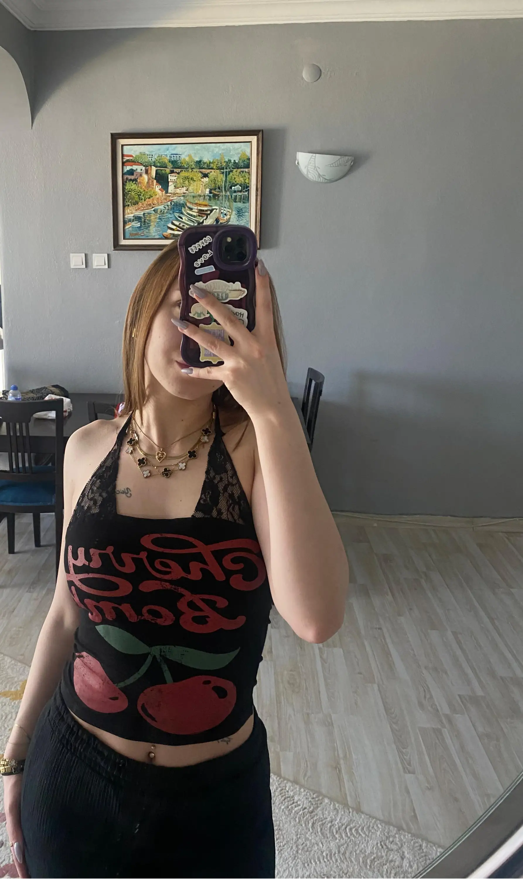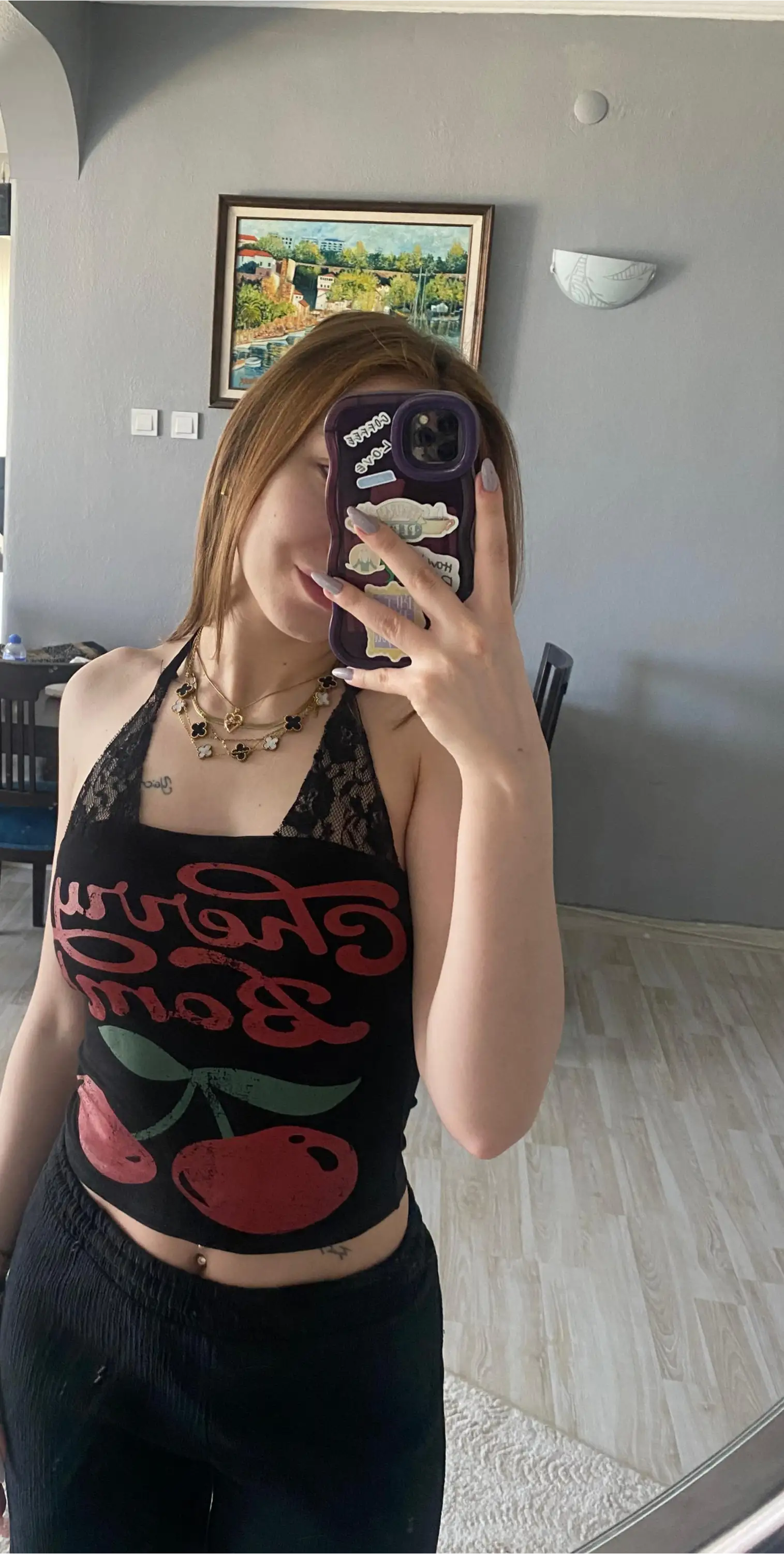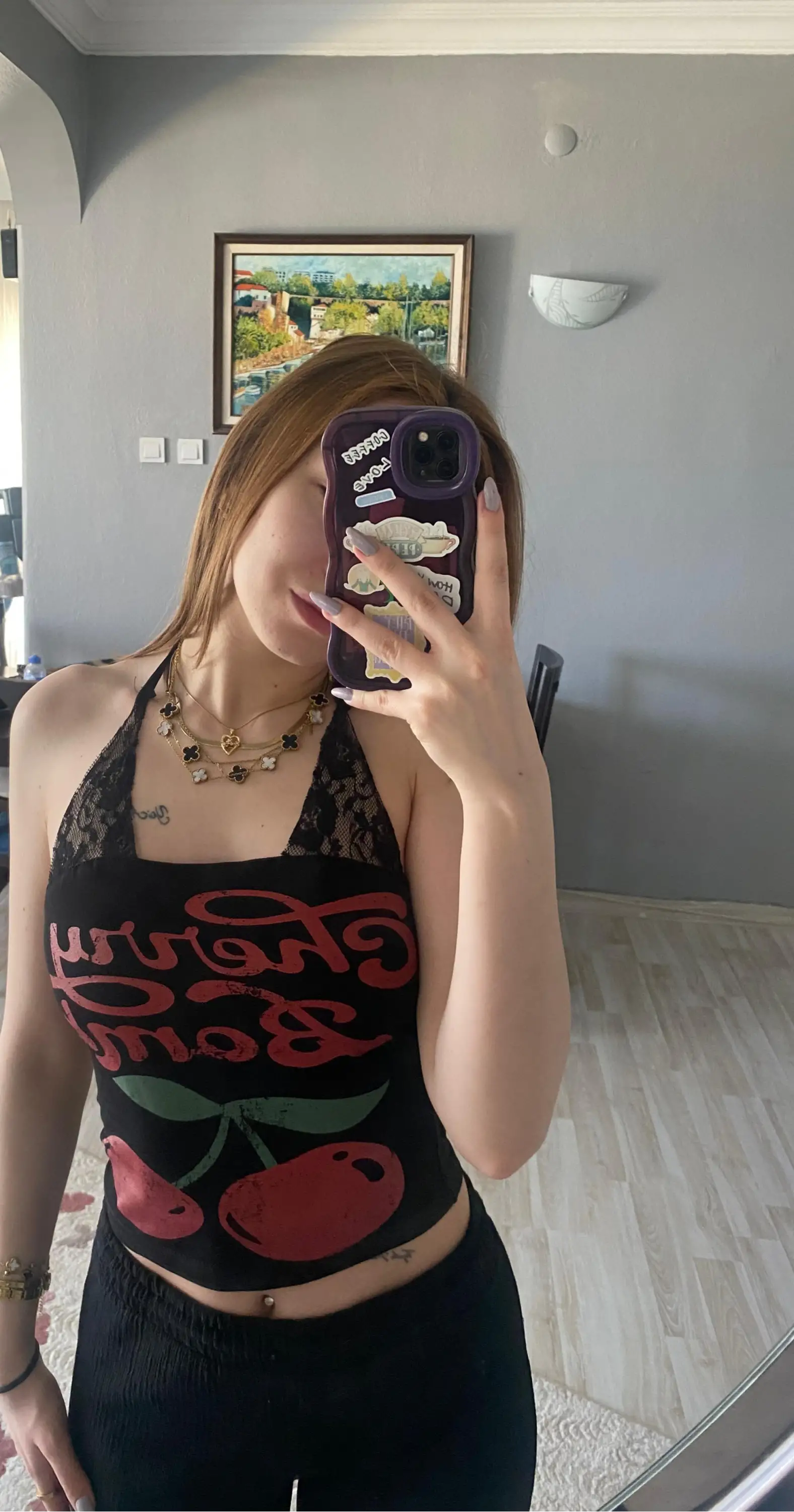 Siyah Cherry Bomb Dantelli Ek Askılı Crop