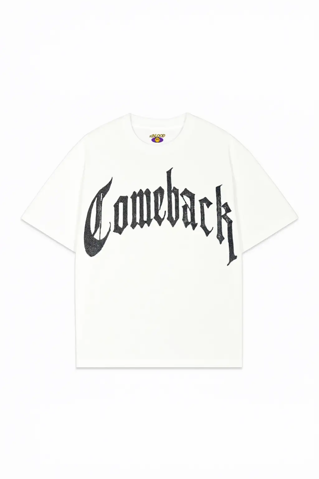 Beyaz ComeBack Kırmızı Taş Baskılı Oversize Unisex T-shirt