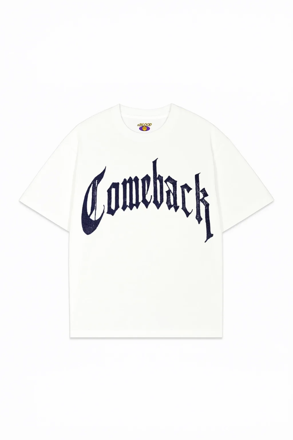 Beyaz ComeBack Mavi Taş Baskılı Oversize Unisex T-shirt