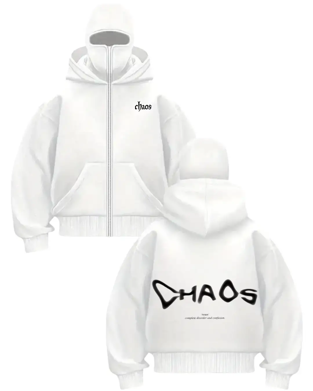 Beyaz Chaos Baskılı Kar Maskeli Unisex Sweatshirt Hırka