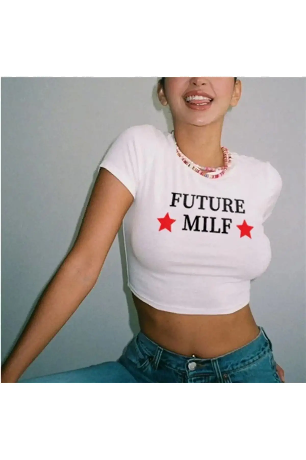 BEYAZ FUTURE MİLF BASKILI CROP