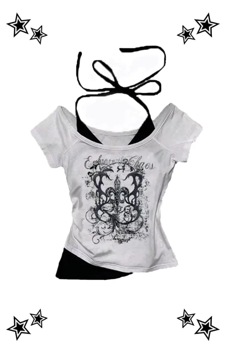 Beyaz Gotik Embrace Madonna Yaka Ek Askılı Y2K Kısa Kollu Crop