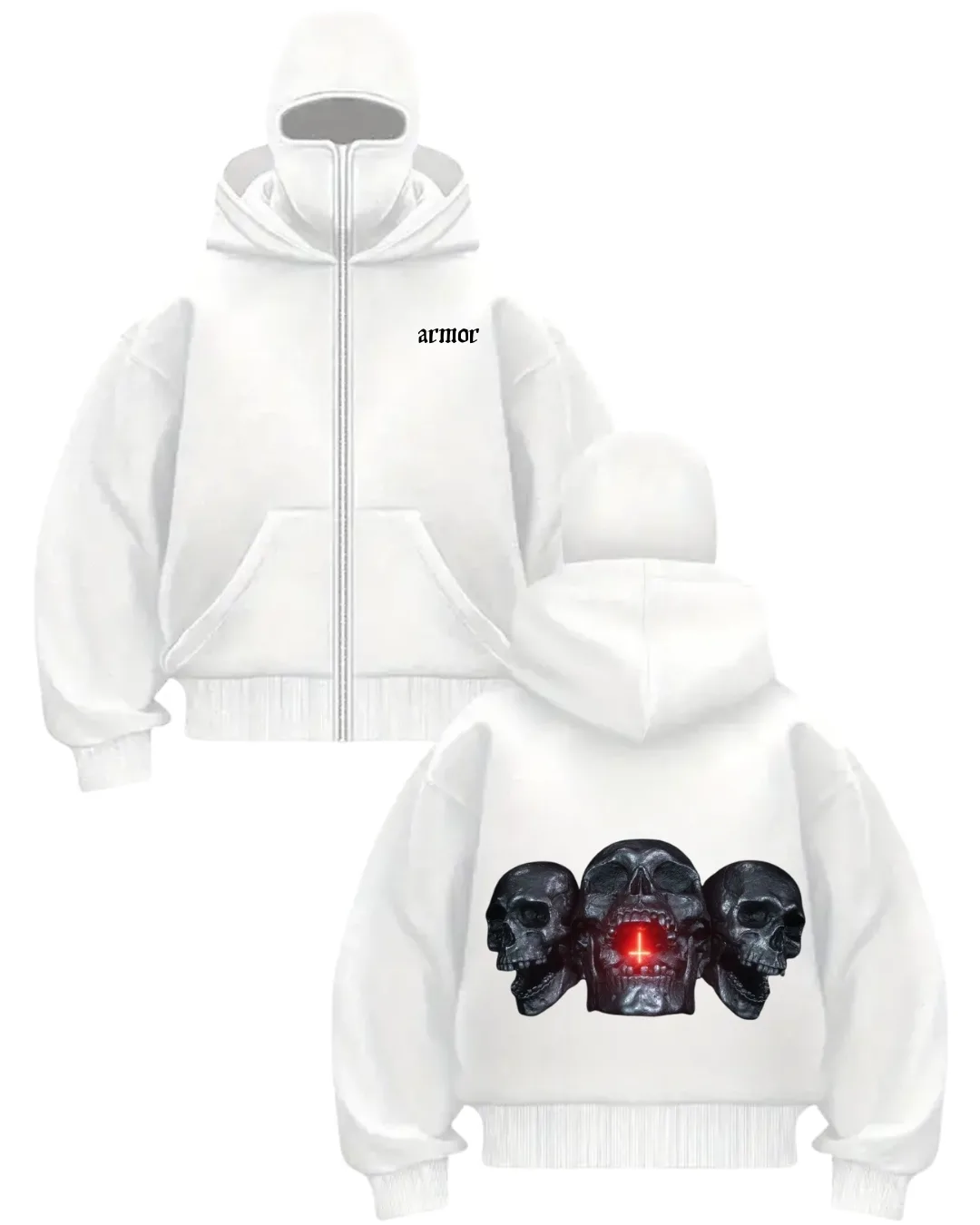 Beyaz Dark Souls Baskılı Kar Maskeli Unisex Sweatshirt Hırka