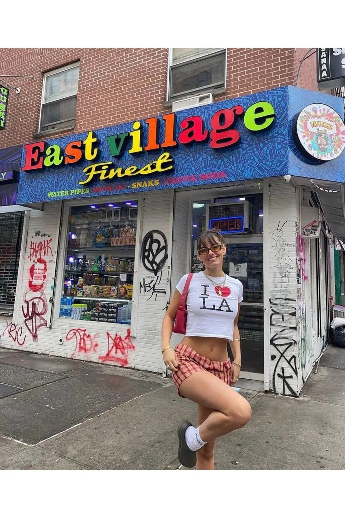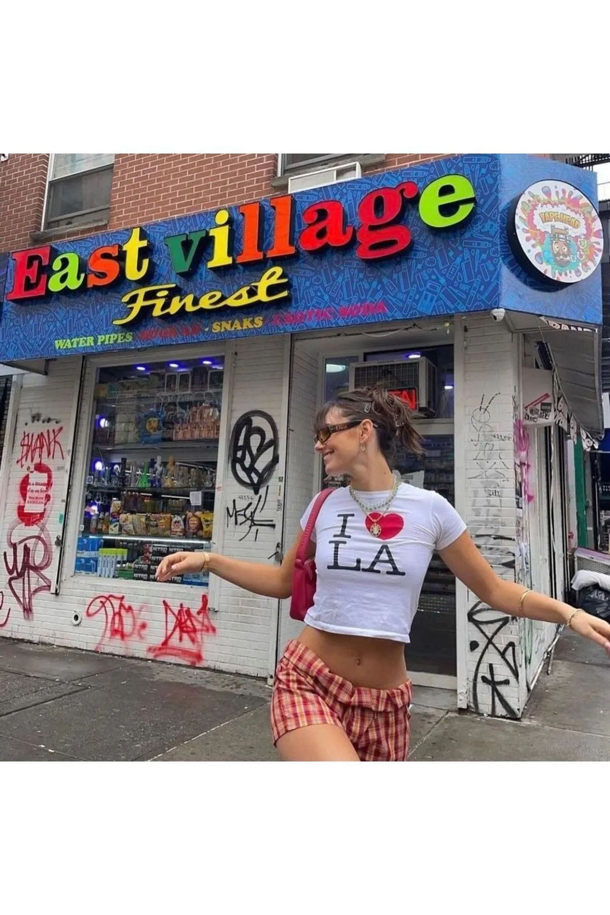 Las Vegas Baskılı Beyaz Crop Top