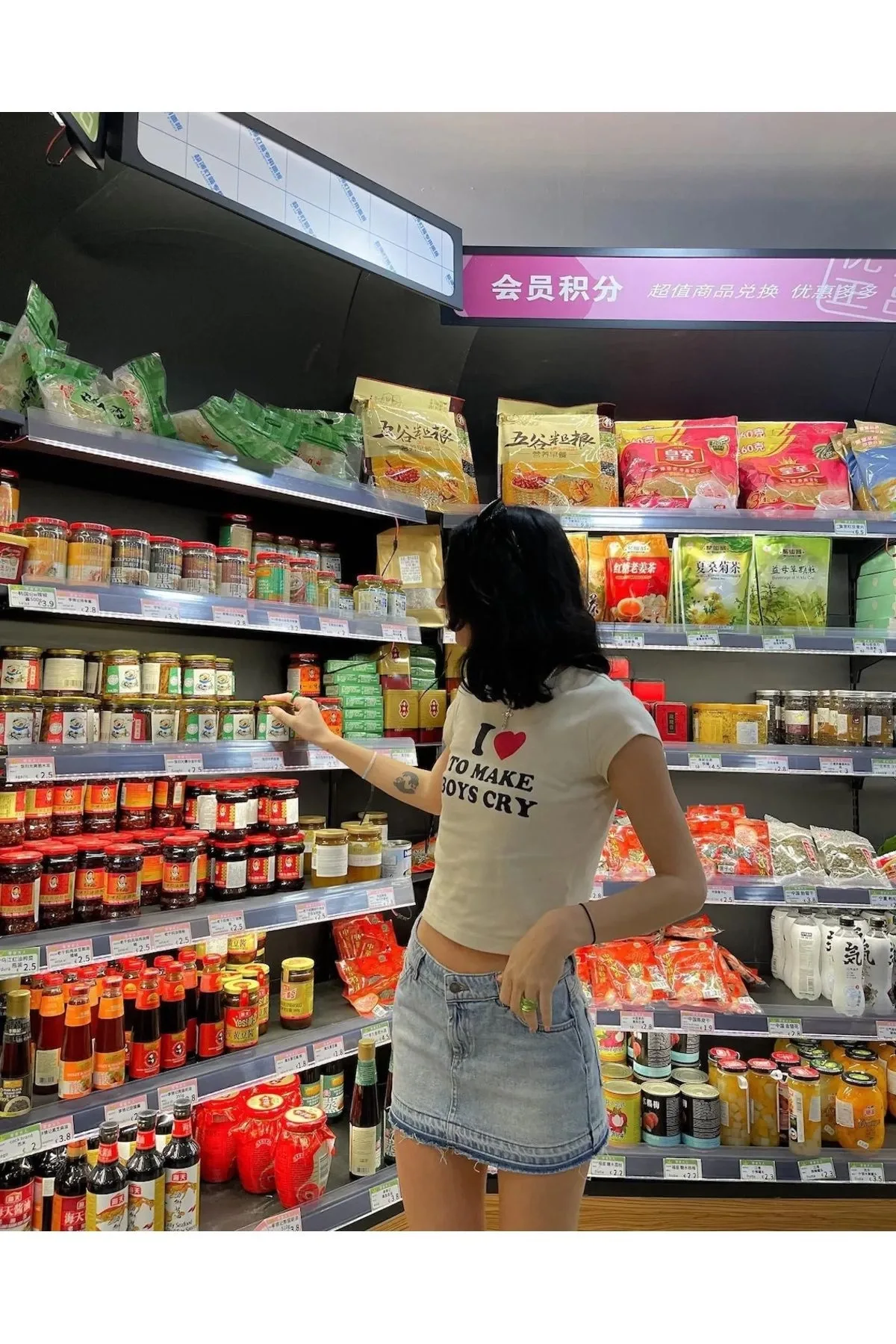 Beyaz I Love To Make Boys Cry Siyah Yazılı Detail Bluz Body Crop Top