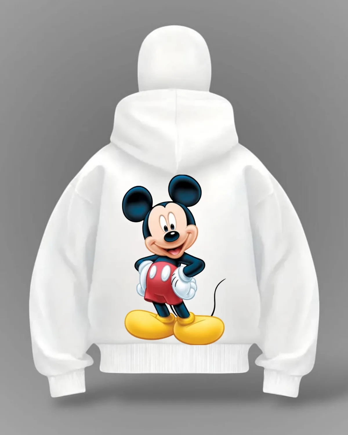 Beyaz Mickey Mouse Baskılı Kar Maskeli Unisex Sweatshirt Hırka