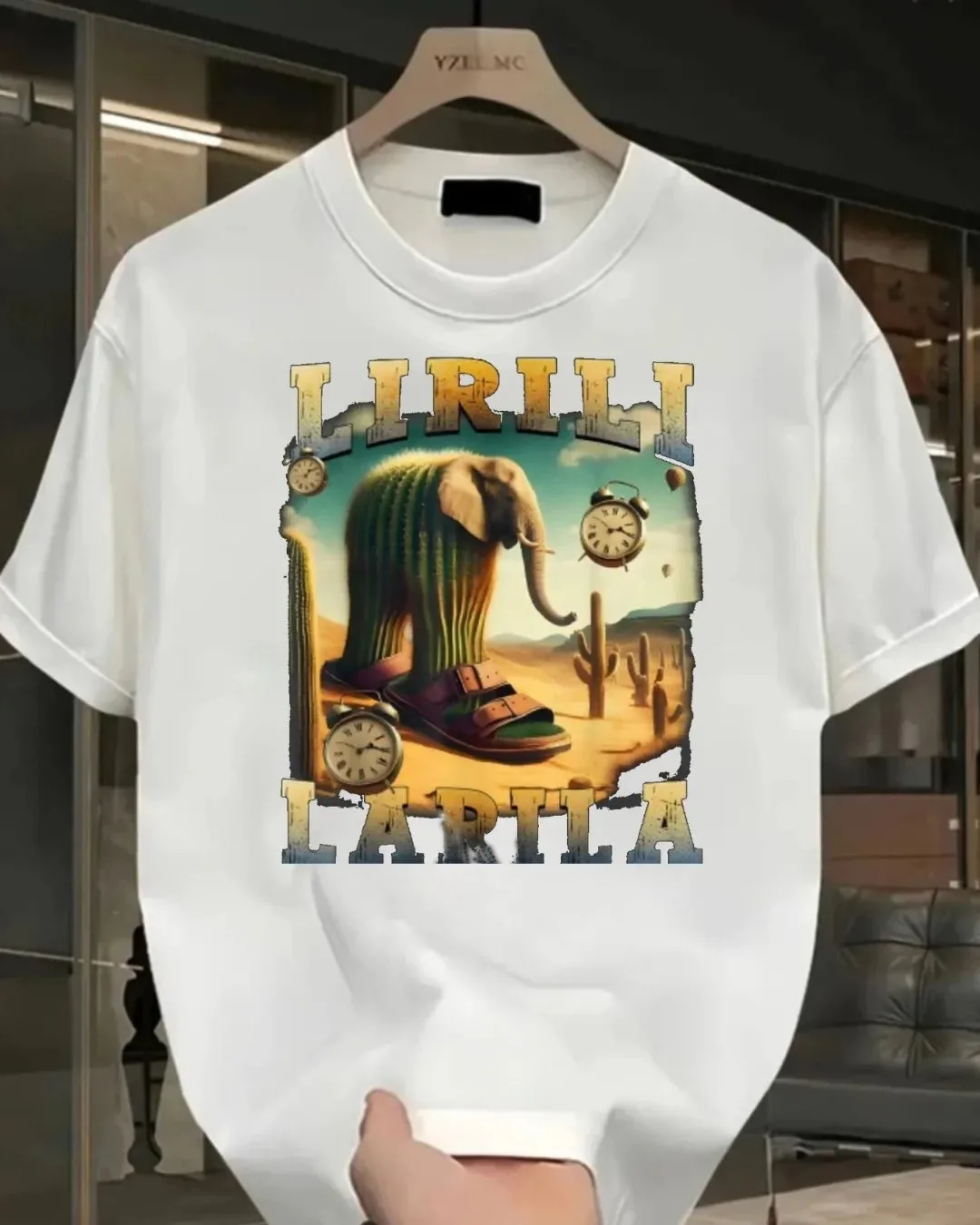 Beyaz Lirili Larila Baskılı Unisex Oversize T-Shirt