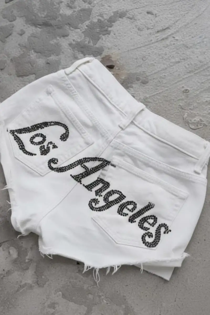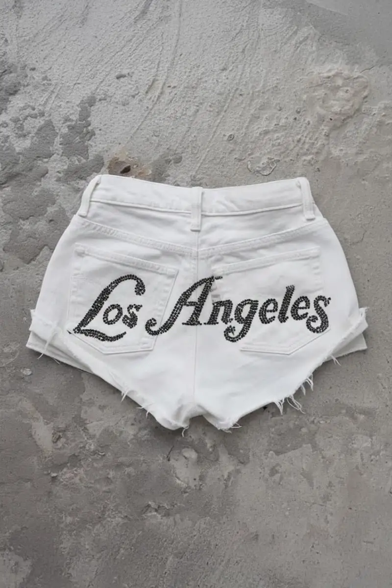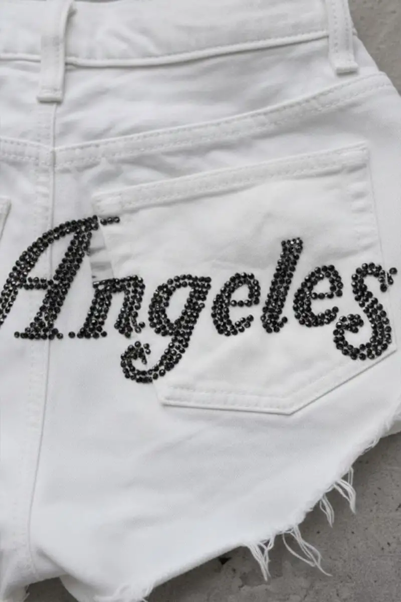 Beyaz Los Angeles Taşlı Y2K Mini Şort
