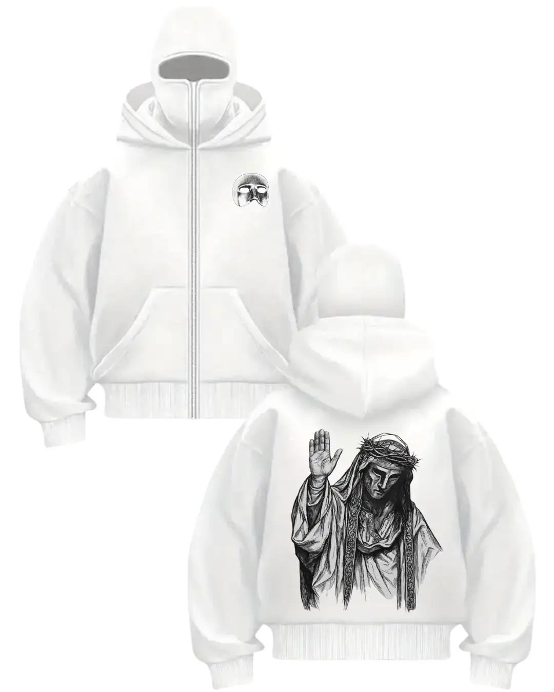 Beyaz Maskeli Unisex King Baldwin Kapüşonlu Hırka