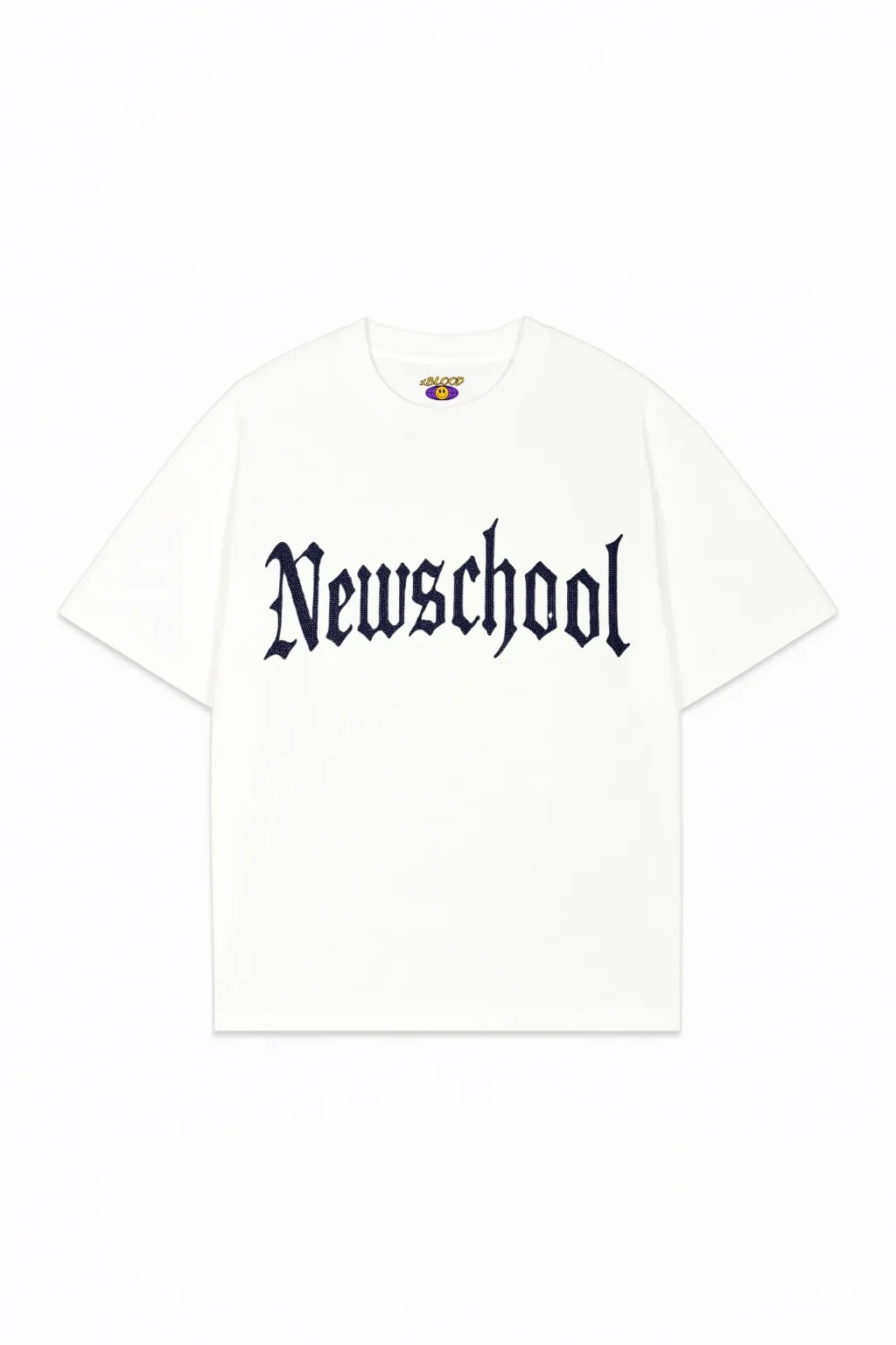 Beyaz NewSchool Mavi Taş Baskılı Oversize Unisex T-shirt