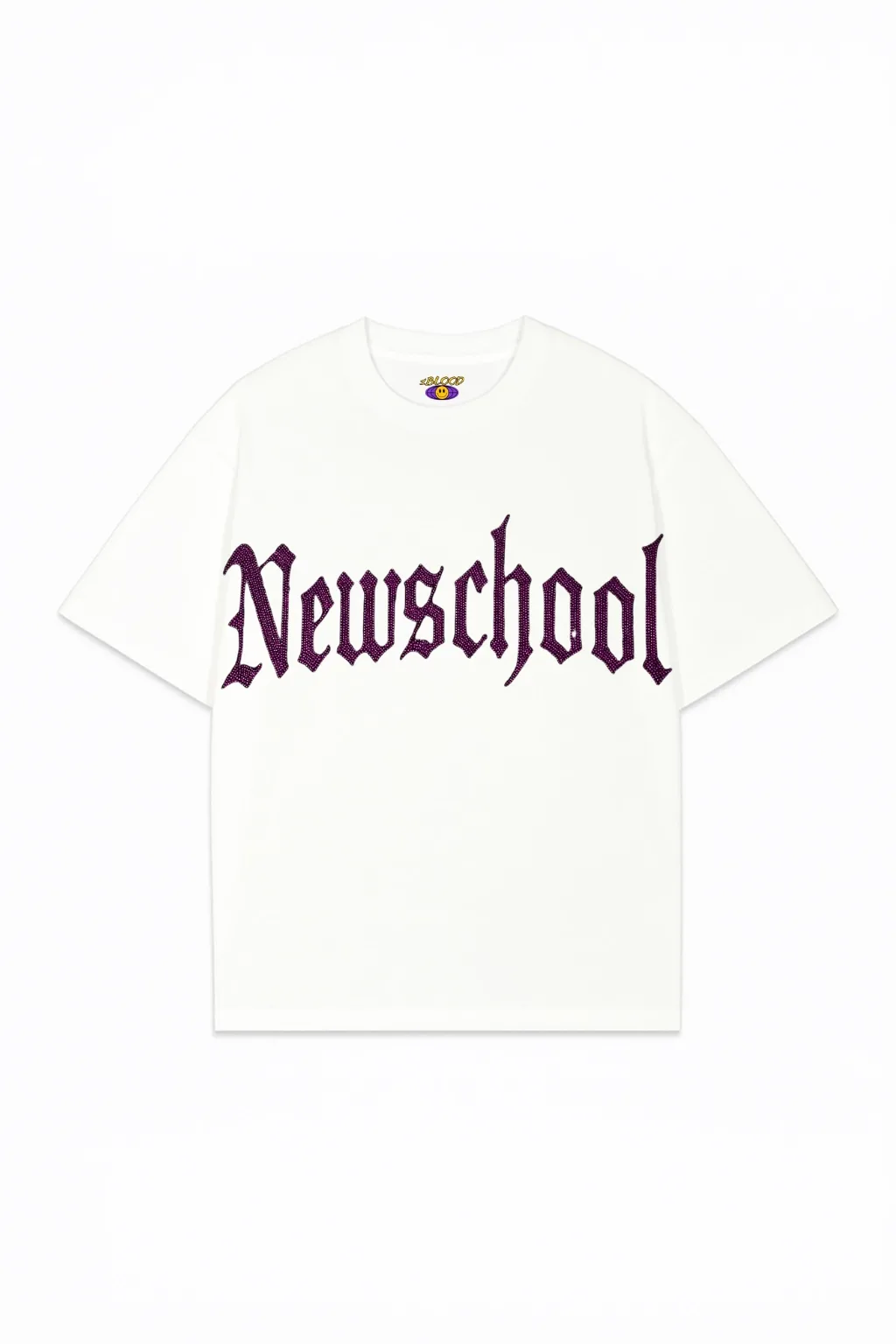 Beyaz NewSchool Kırmızı Taş Baskılı Oversize Unisex T-shirt