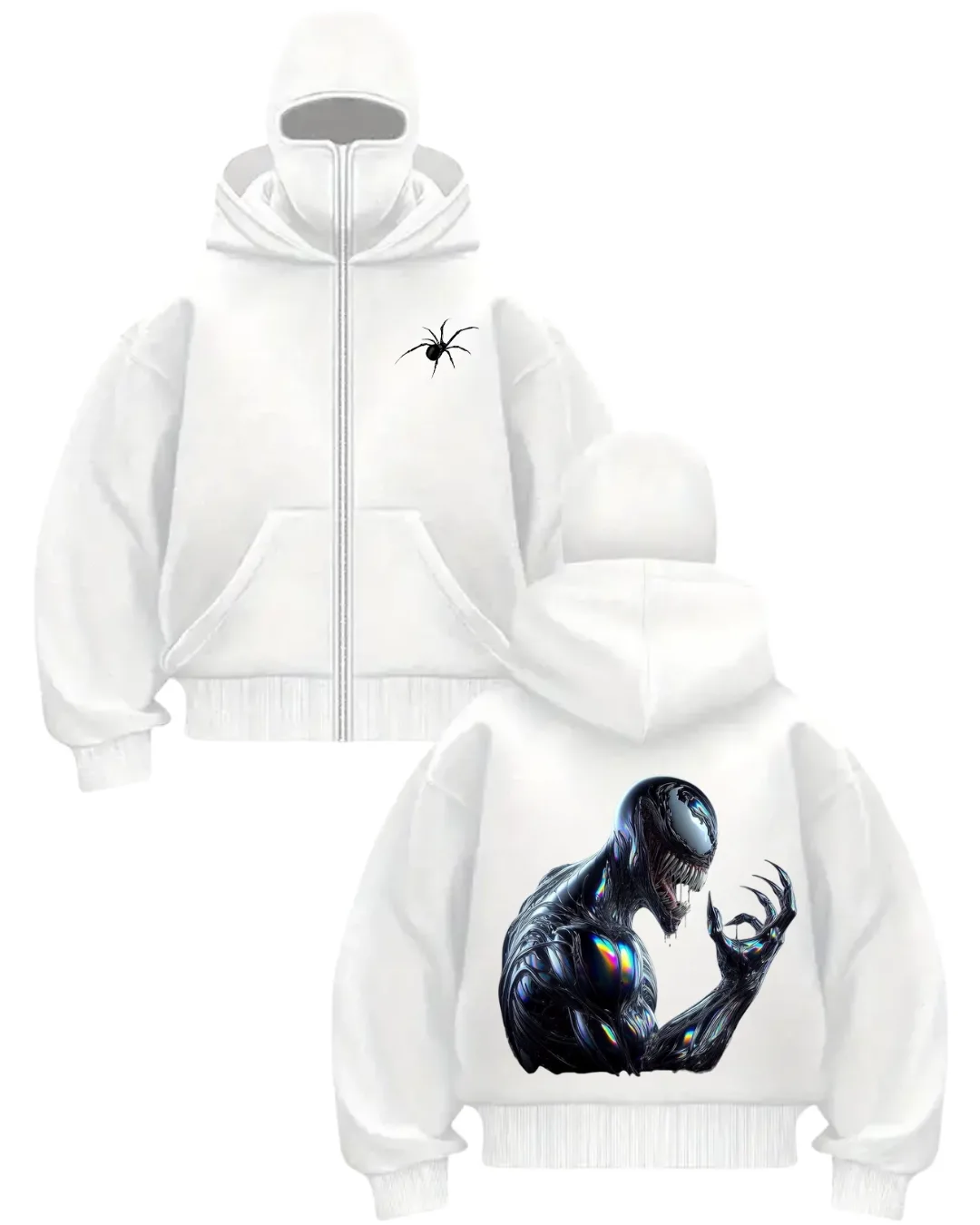 Beyaz Venom Baskılı Kar Maskeli Unisex Sweatshirt Hırka