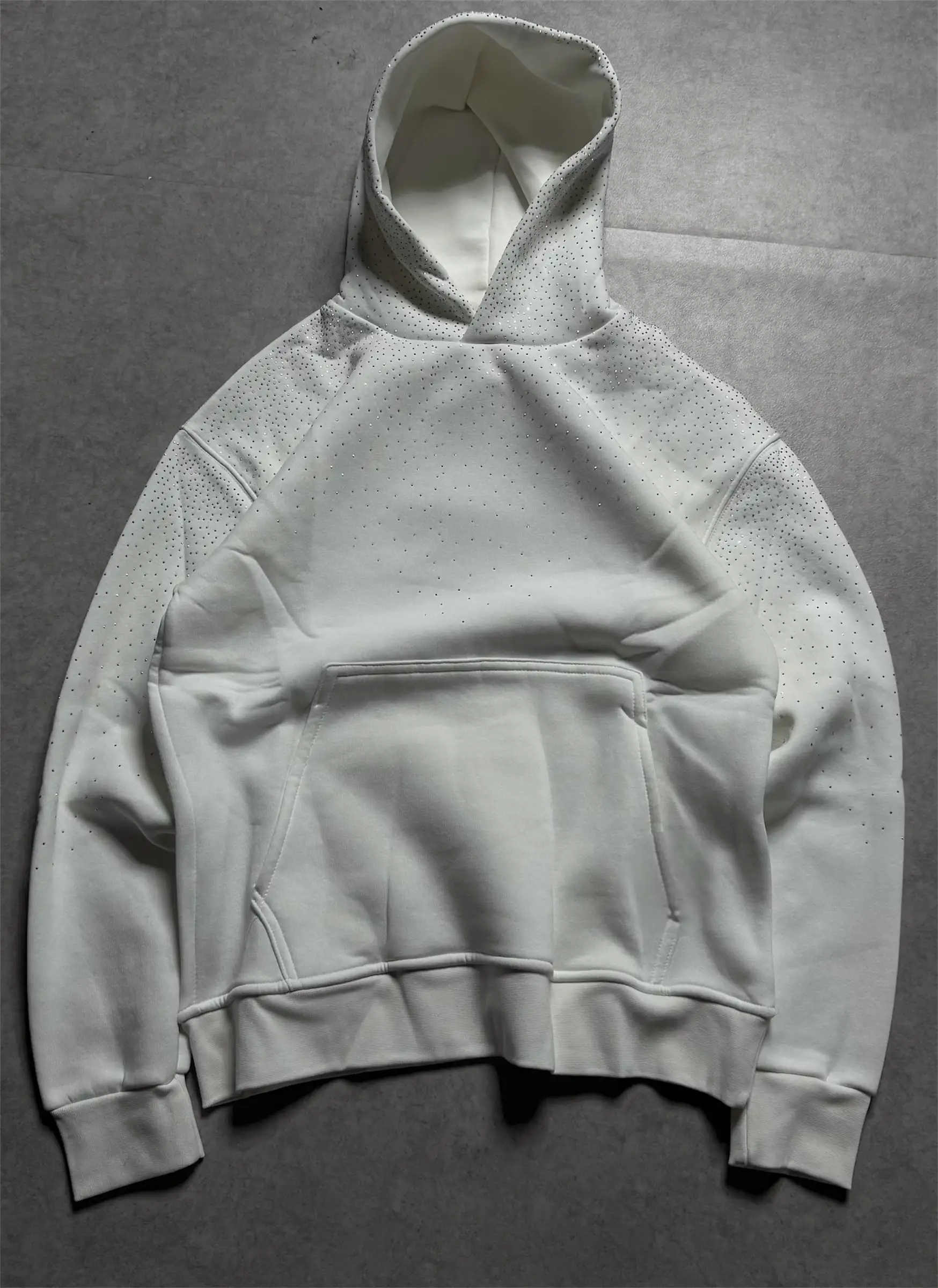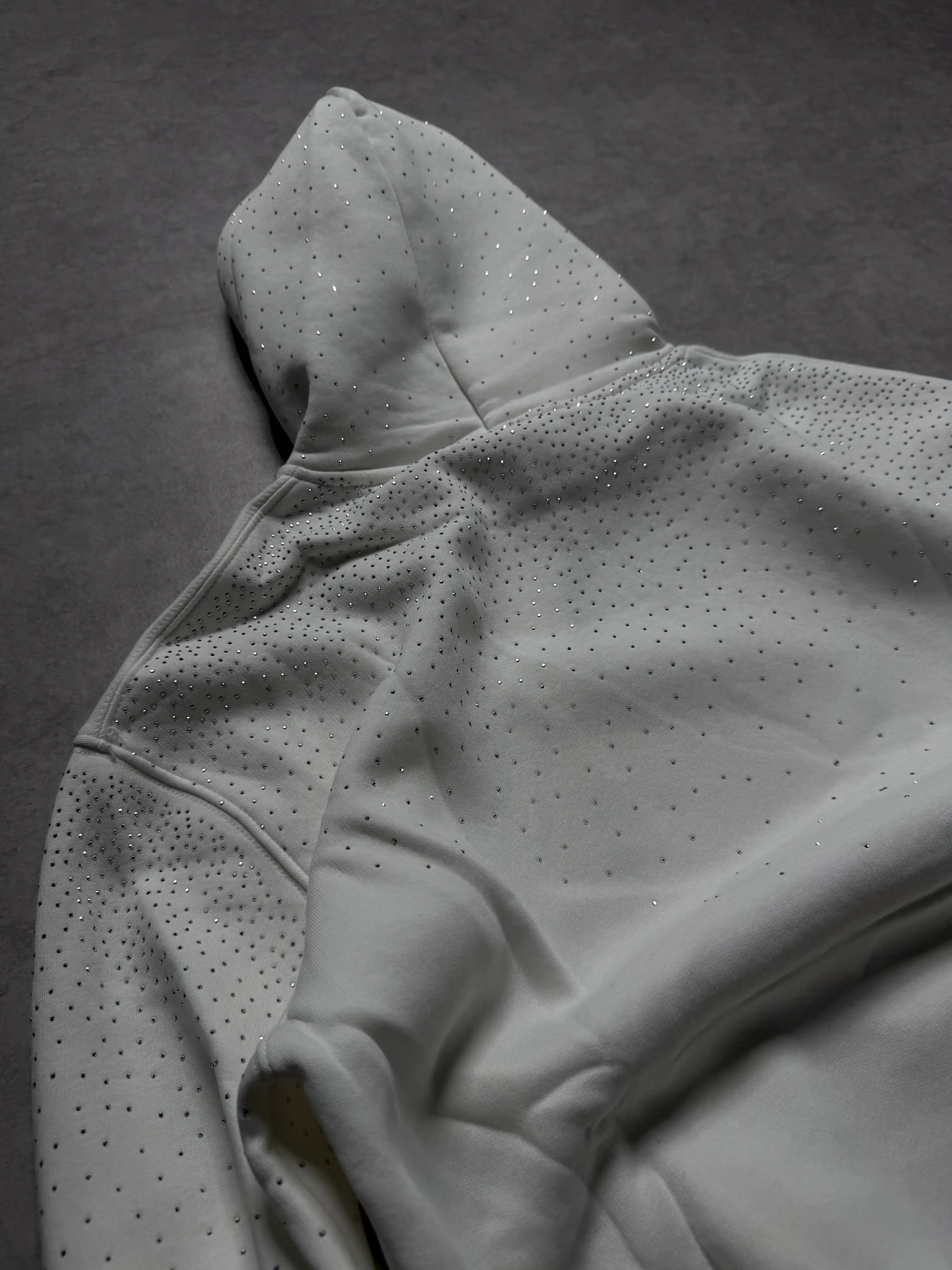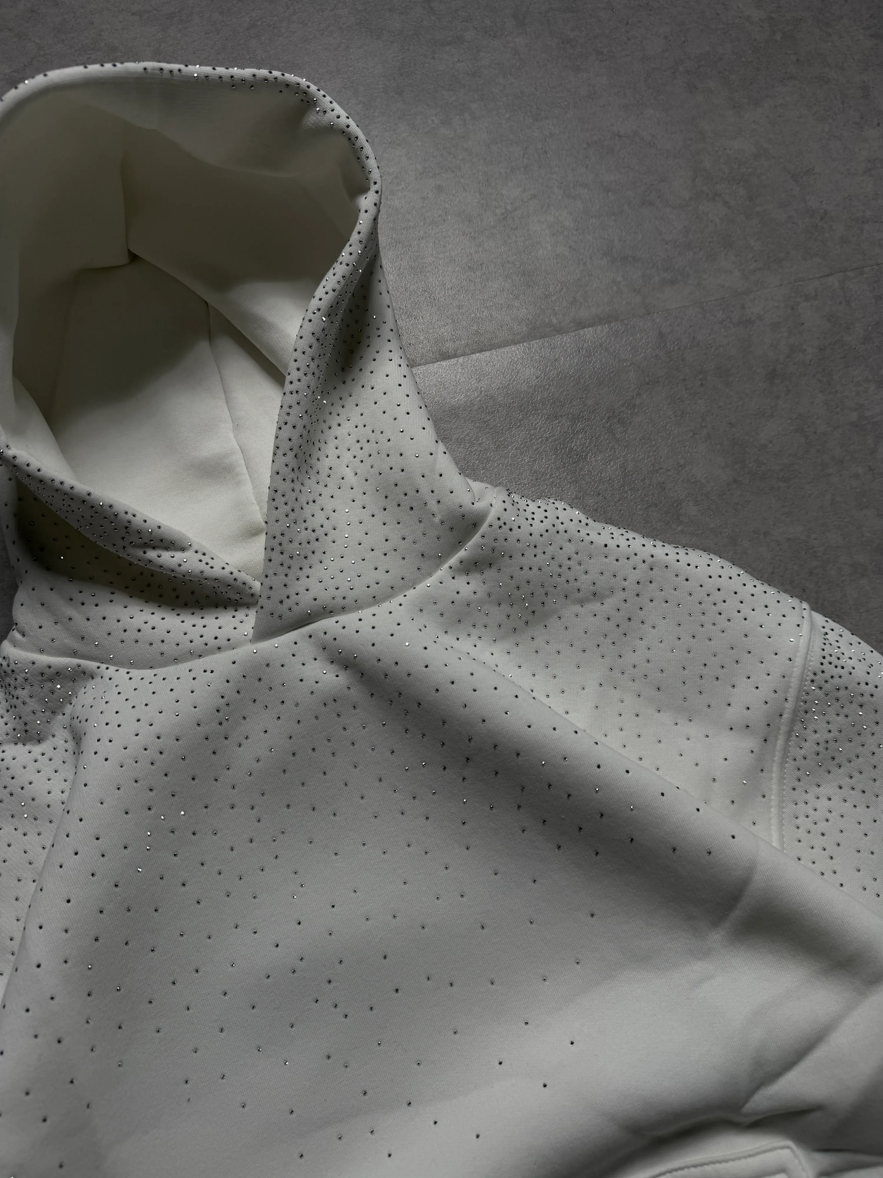 Beyaz Özel Seri Oversize Taşlı Sweatshirt
