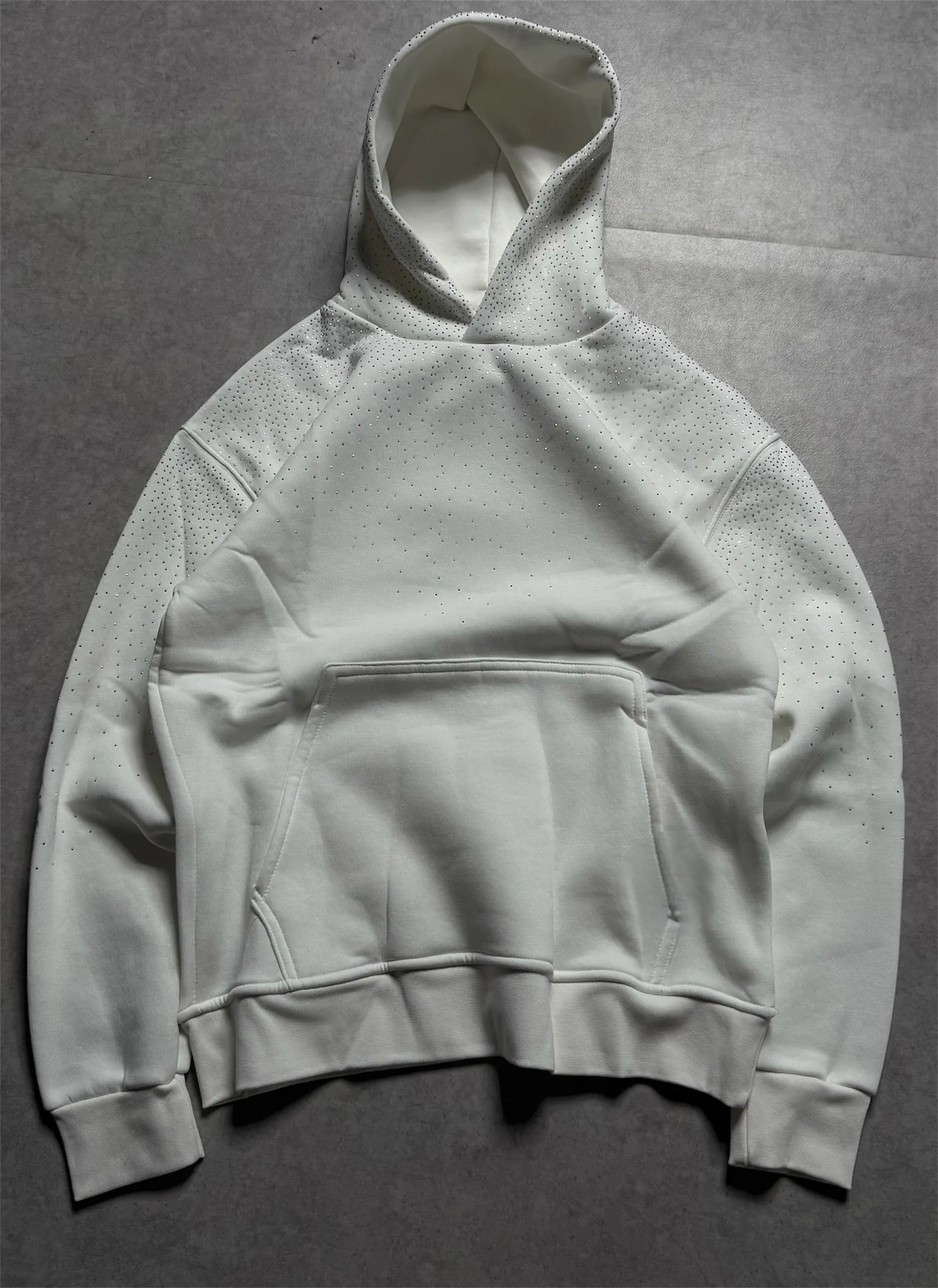 Parıltılı Taş Baskılı Kapüşonlu Oversize 3 İplik Sweat