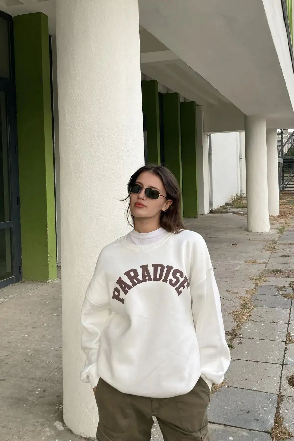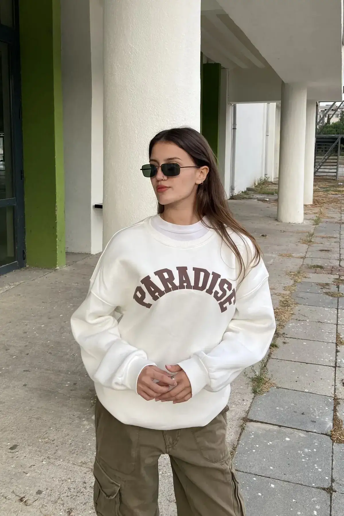 Beyaz Paradise Bisiklet Yaka Oversize Unisex