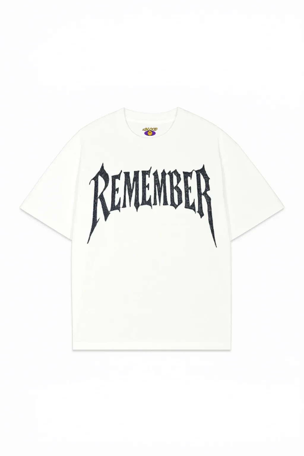 Beyaz Remember Kırmızı Taş Baskılı Oversize Unisex T-shirt