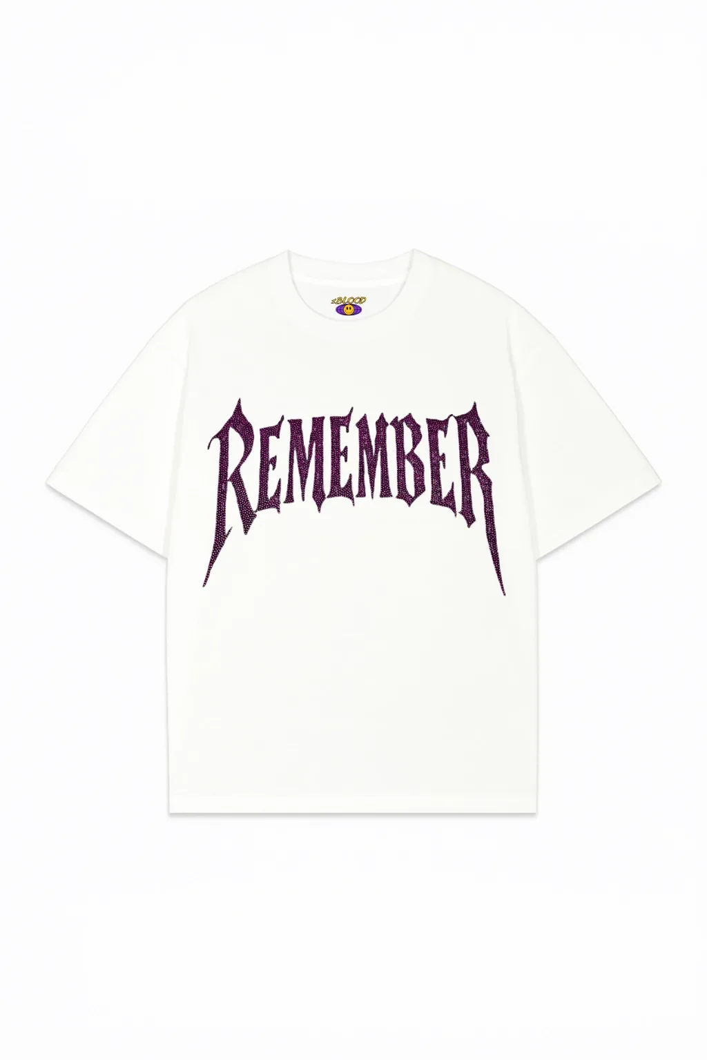 Beyaz Remember Kırmızı Taş Baskılı Oversize Unisex T-shirt